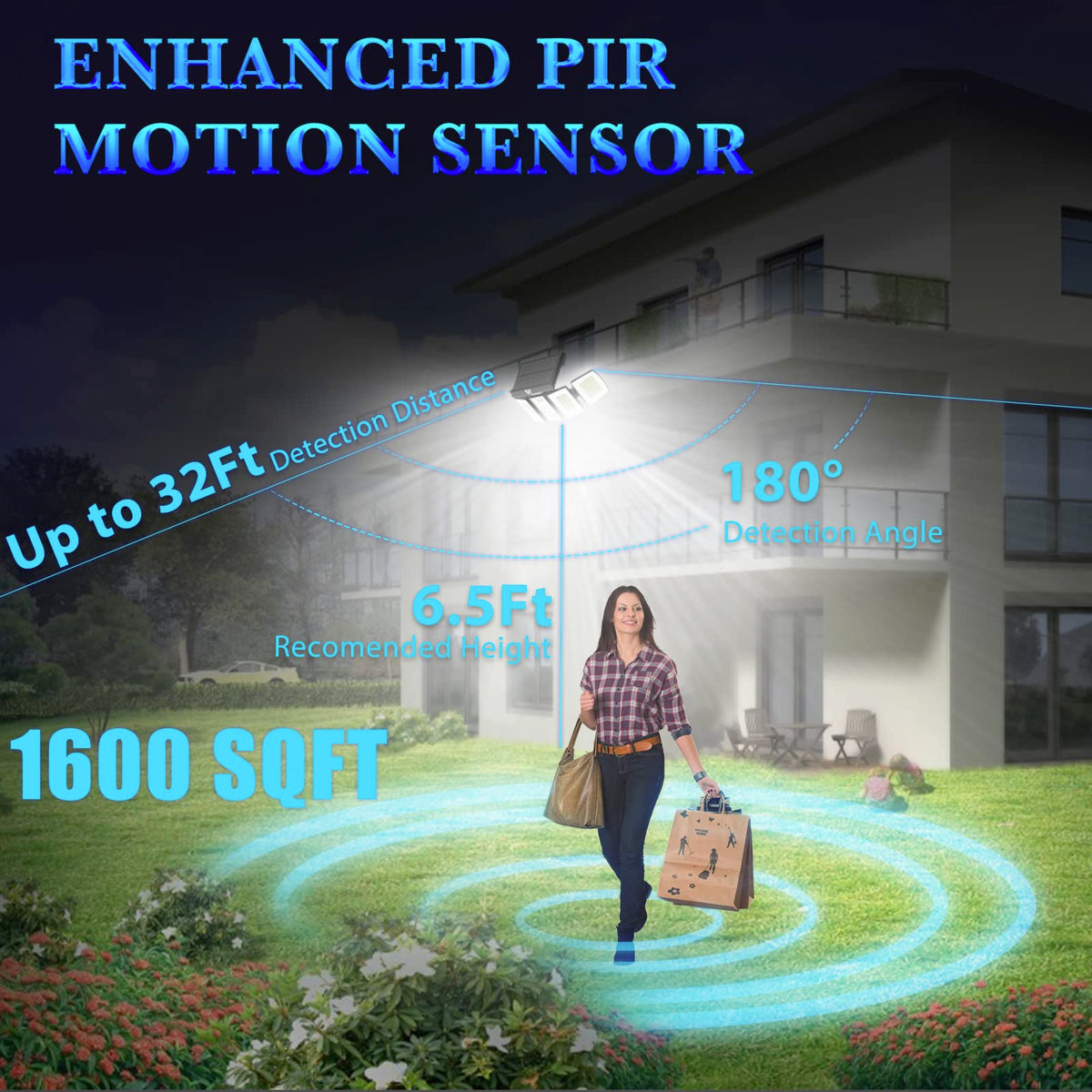 - **Smart PIR Motion Sensor**: The advanced PIR motion sensor detects movement within a remarkable range of up to 40 feet and a 180° field of view, illuminating areas up to 1600 square feet. Choose from three lighting modes: Sensor mode, All Lighting mode, and Dim mode + Sensor mode for tailored illumination.