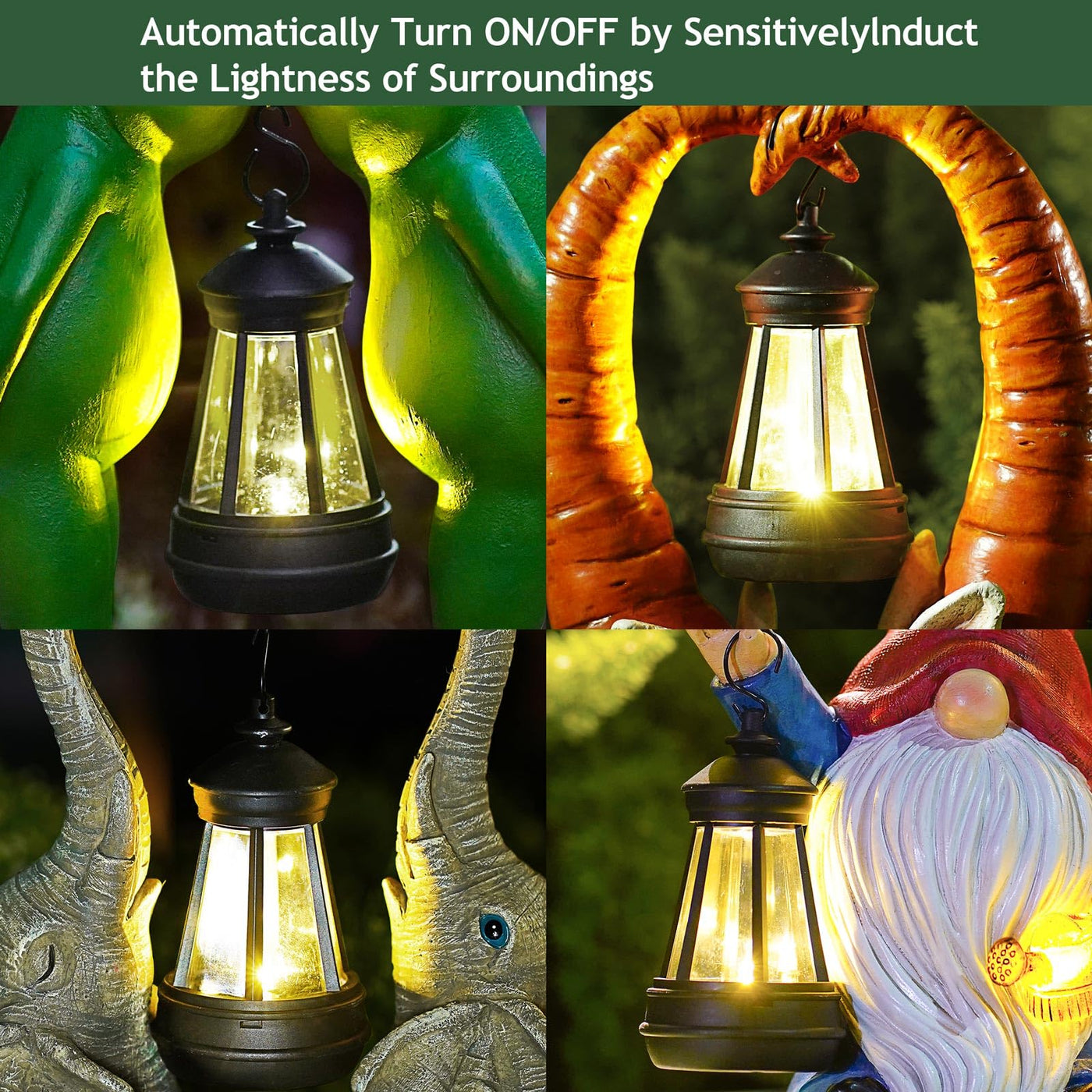 ?Vintage Design? - The retro style makes it more unique with aesthetic sense. Led vintage lantern is made of high quality ABS plastic material, never get rusty no ever rainy or snowy. Lighting soft and fills the area with quiet and elegant ambiance at night. | ?Solar Powered & Auto ON/OFF? - The outdoor solar lantern runs on solar power, no additiinal batteries, energy saving and environmental protection. Turn the switch to