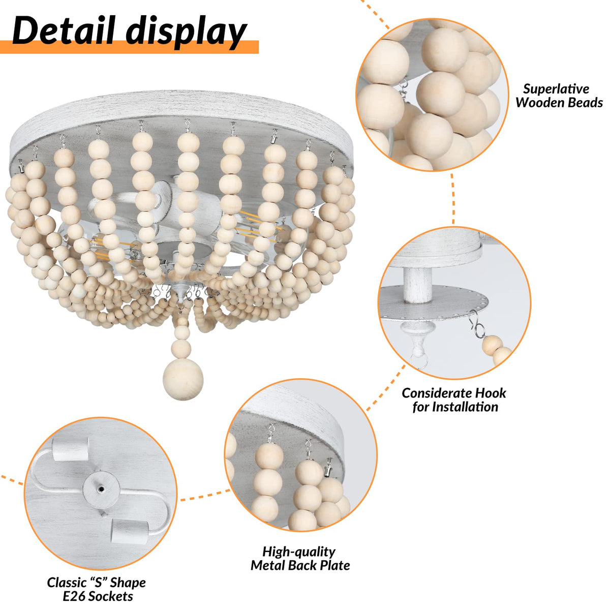 Bohemian Style & Eye-Catching Design: The unique 2-light boho chandelier features solid wood beads that add an exotic flair to your decor. When illuminated, it creates a romantic ambiance that soothes your senses and impresses your guests.