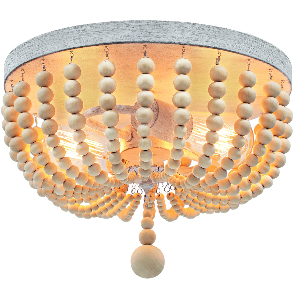 Verron Boho Wood Bead Chandelier - Retro 2-Light Pendant Ceiling Light For Home & Nursery