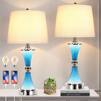 Verron Set Of 2 Blue Crystal Table Lamps With Usb Ports, 3-Way Dimmable Touch Control