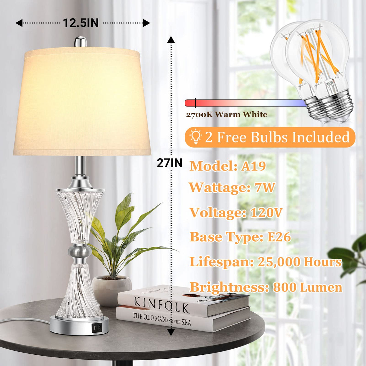 Q: What type of bulbs are included with the lamps?A: The lamps come with 2 energy-efficient A19 LED bulbs included in the package. These bulbs provide a warm white light at 2700K and have a lifespan of approximately 25,000 hours, helping to reduce energy consumption.