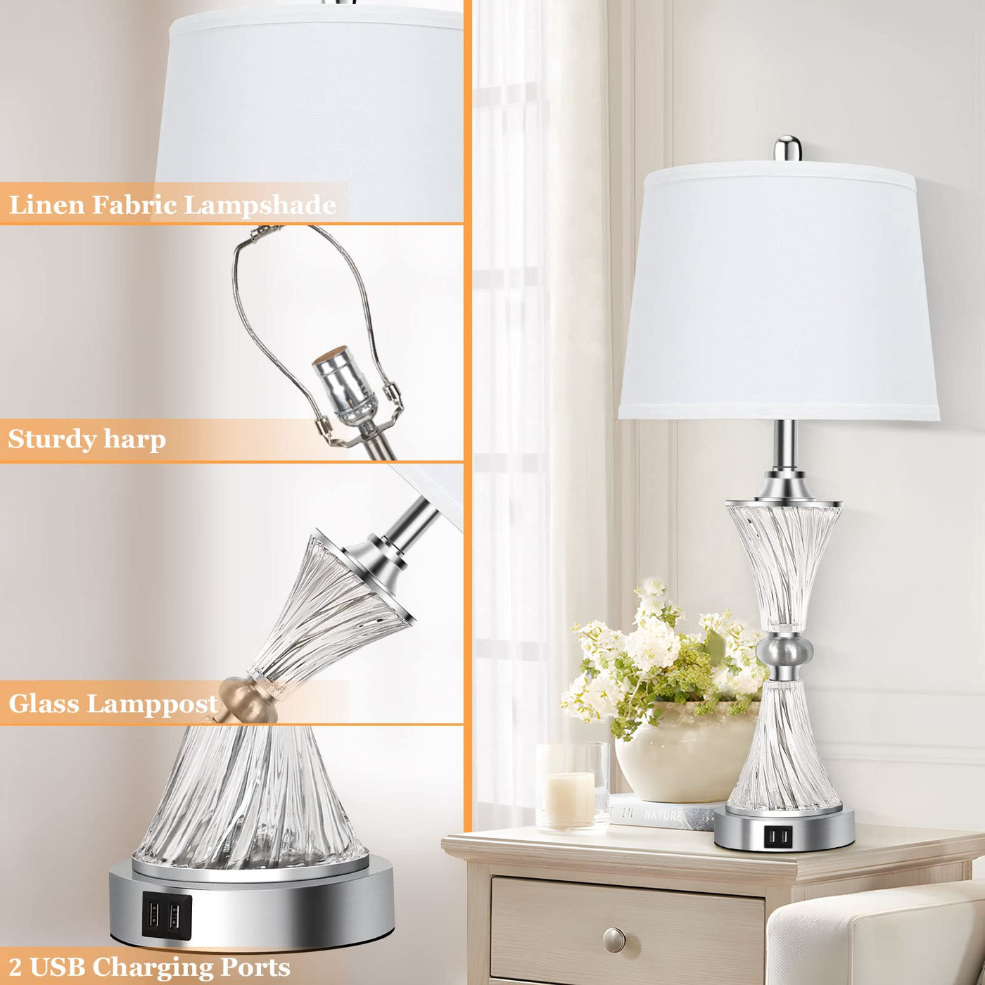 Verron Set Of 2 Touch Control Silver Table Lamps With Usb Ports, 3-Way Dimmable, Bulbs Included