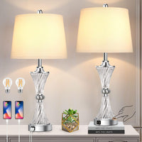 Q: What materials are the lamps made from?A: These table lamps are crafted from high-quality crystal, metal, and natural linen fabric. The crystal base is finely cut for a sparkling effect, while the linen lampshade softens glare and provides eye protection.
