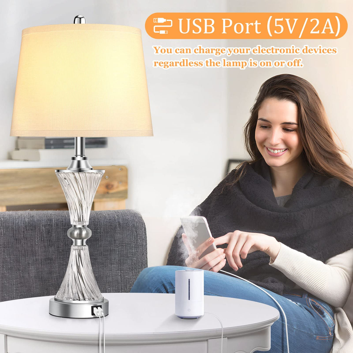 - **Dual USB Charging Ports**: Enjoy the convenience of two built-in USB ports that support 5V/2A fast charging. Charge your devices seamlessly, whether the lamp is on or off, making it perfect for bedside use or in your living room.