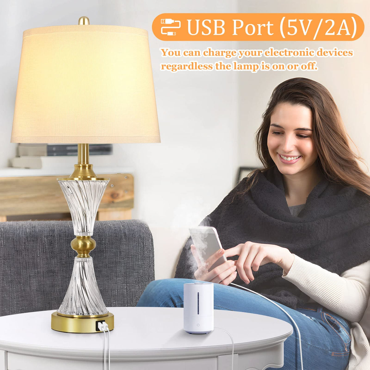 Q: Can I charge my devices while the lamp is off?A: Yes, the table lamps are equipped with 2 USB ports that function independently of the lamp's power state. This means you can charge your smartphones, tablets, or other devices even when the lamp is turned off, ensuring your devices are always ready to use.