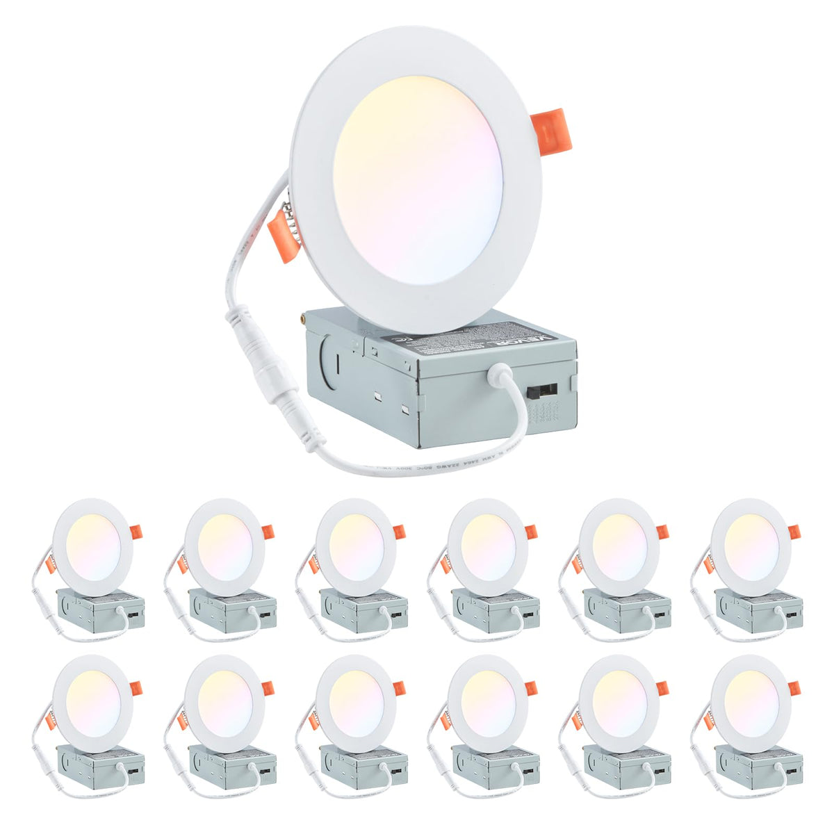 VEVOR 12 Pack 4 Inch LED Recessed Ceiling Light, 5CCT, Ultra-Thin Canless Wafer Downlight with Junction Box, 2700K/3000K/3500K/4