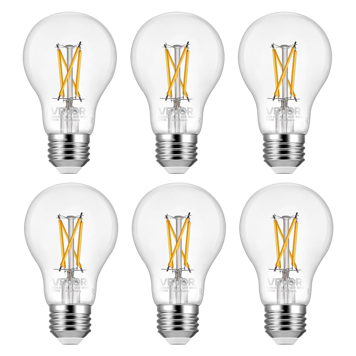 Warm Light Vintage Bulb: This set of 6 bulbs features a 2700K soft yellow light and a vintage Edison-style design. The high Color Rendering Index enhances colors, effortlessly creating a warm and cozy home atmosphere. It