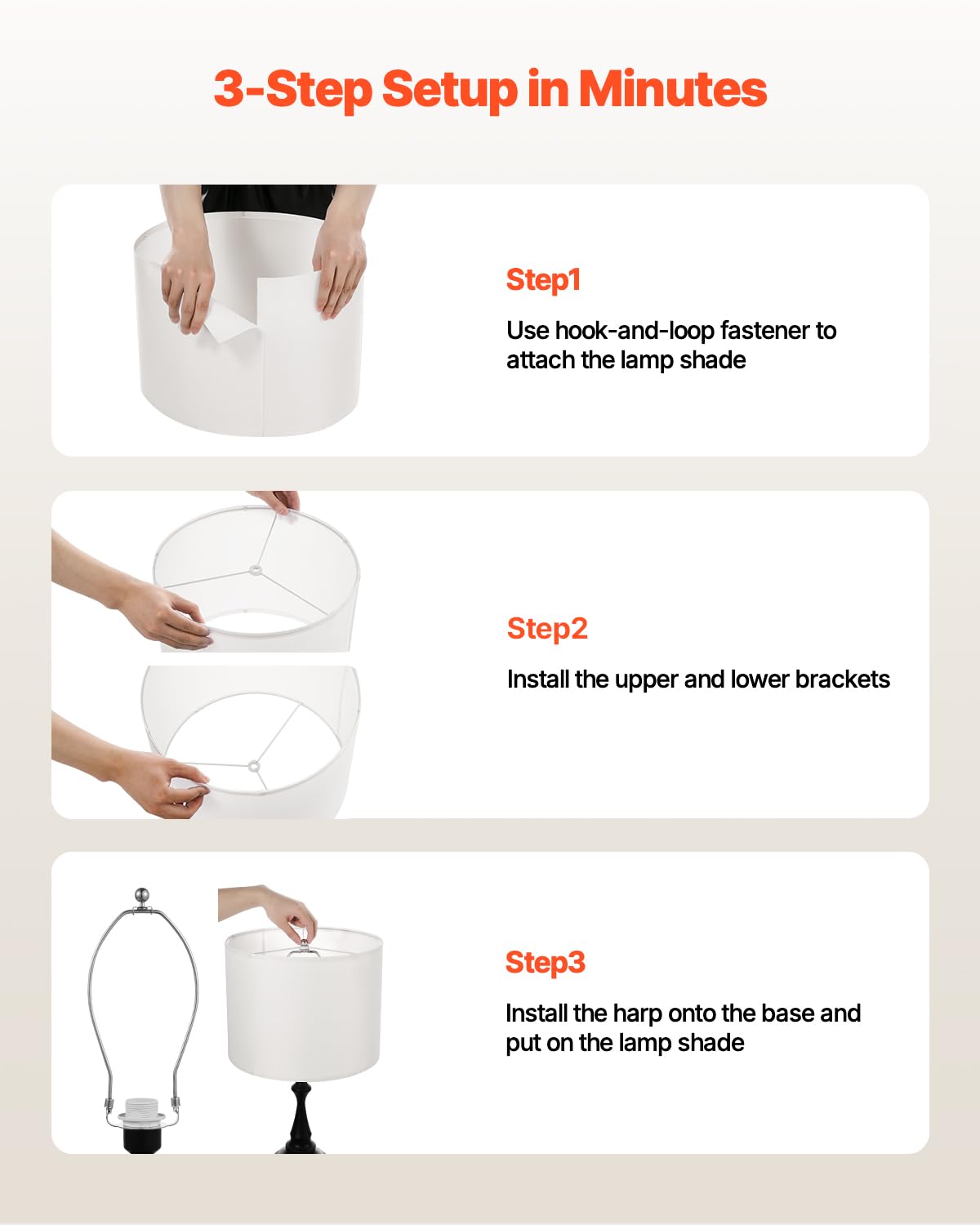 Vevor Drum Lamp Shade 2 Set 16 In Top X 16 In Bottom X 12 In High Large Lampshade With Harp Replacement Lamp Shade For Table Lamps Floor Lamps Pendant Lights Easy Assembly Required (Off-White)