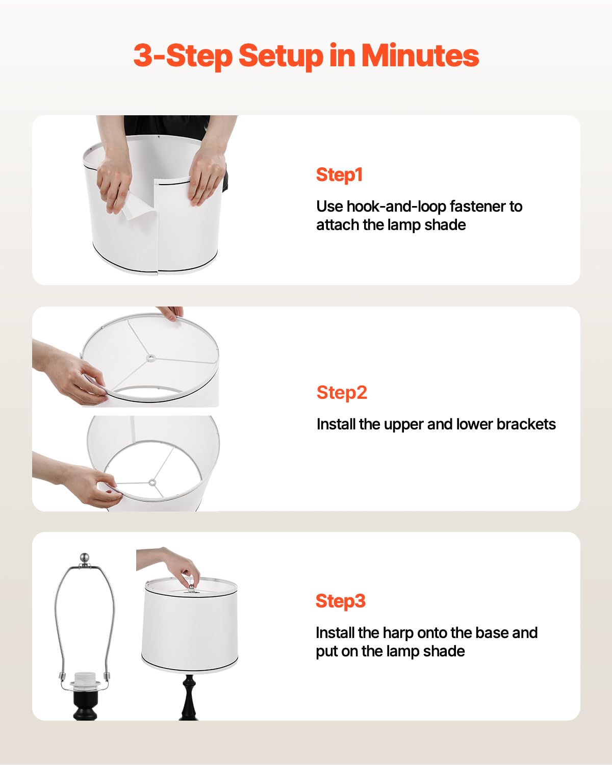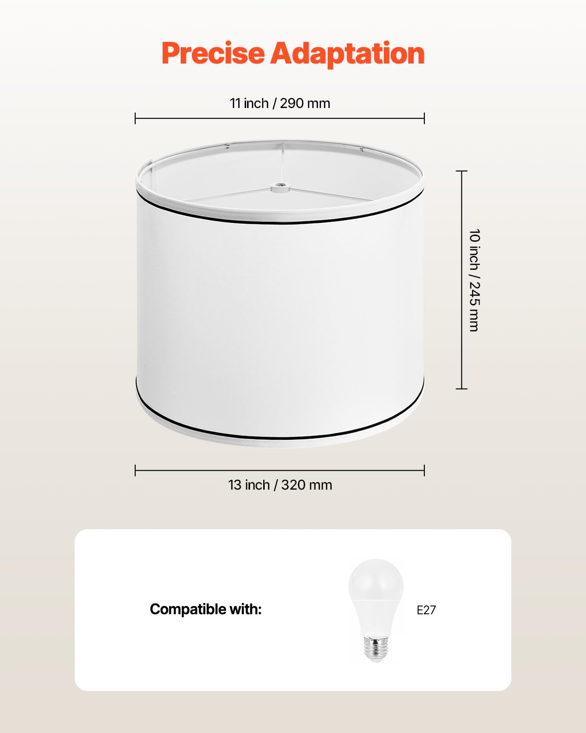 Vevor Lamp Shade 2 Set 11 In Top X 13 In Bottom X 10 In High (Spider Fitter) Medium Lampshade With Harp Replacement Lamp Shade For Table & Floor Lamps Pendant Lights White With Black Edge