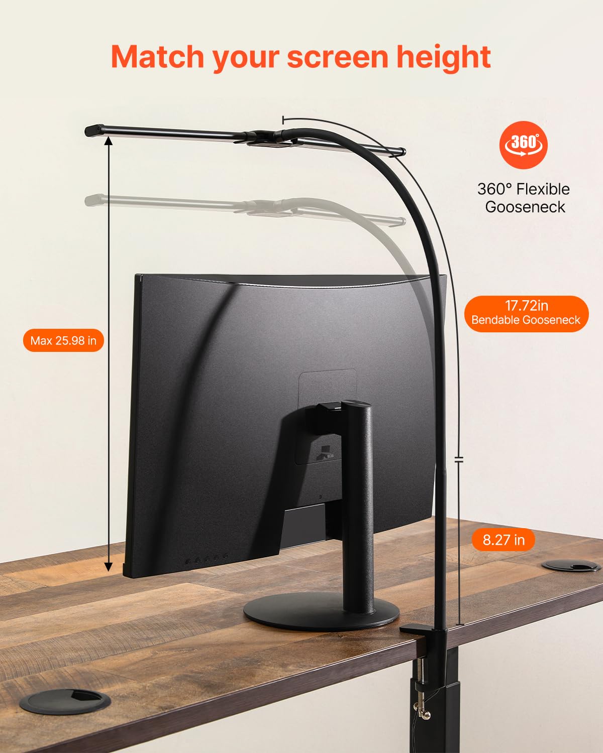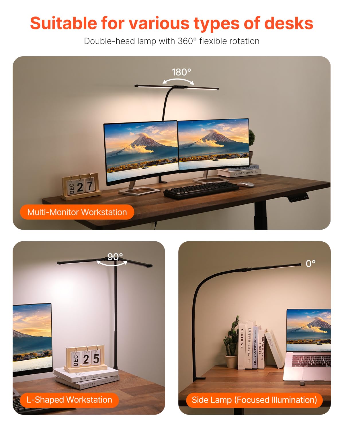 Dual-Head Desk Lamp: Featuring A Double-Head Design, This Led Desk Lamp With Clamp Offers Broader, More Even Illumination, Ideal For L-Shaped Desks Or Multi-Monitor Workstations. The Lamp Head Is Rotatable, And Whether Used As A Main Light Or A Side Lamp, It Emits A Soft, Flicker-Free Glow That Reduces Eye Strain And Enhances Work Efficiency. | Bright And Eye-Caring Lighting: This Double-Head Led Desk Lamp Features A 24-Inch (61 Cm) Extended Lamp Head, Providing Wide Coverage To Illuminate Your Workspace. It Contains 160 High-Brightness Led Beads, Offering Bright And Even Lighting, Creating A Well-Lit And Comfortable Environment For Your Work. | Personalized Lighting Modes: Our Architect Desk Lamp For The Home Office Offers 50 Lighting Modes - 5 Color Temperatures (3000K-6500K) And 10 Brightness Levels (10%-100%) To Meet Your Personalized Lighting Needs. With The Added Timer And Memory Functions, It Offers A Smarter And More Convenient User Experience. | 360