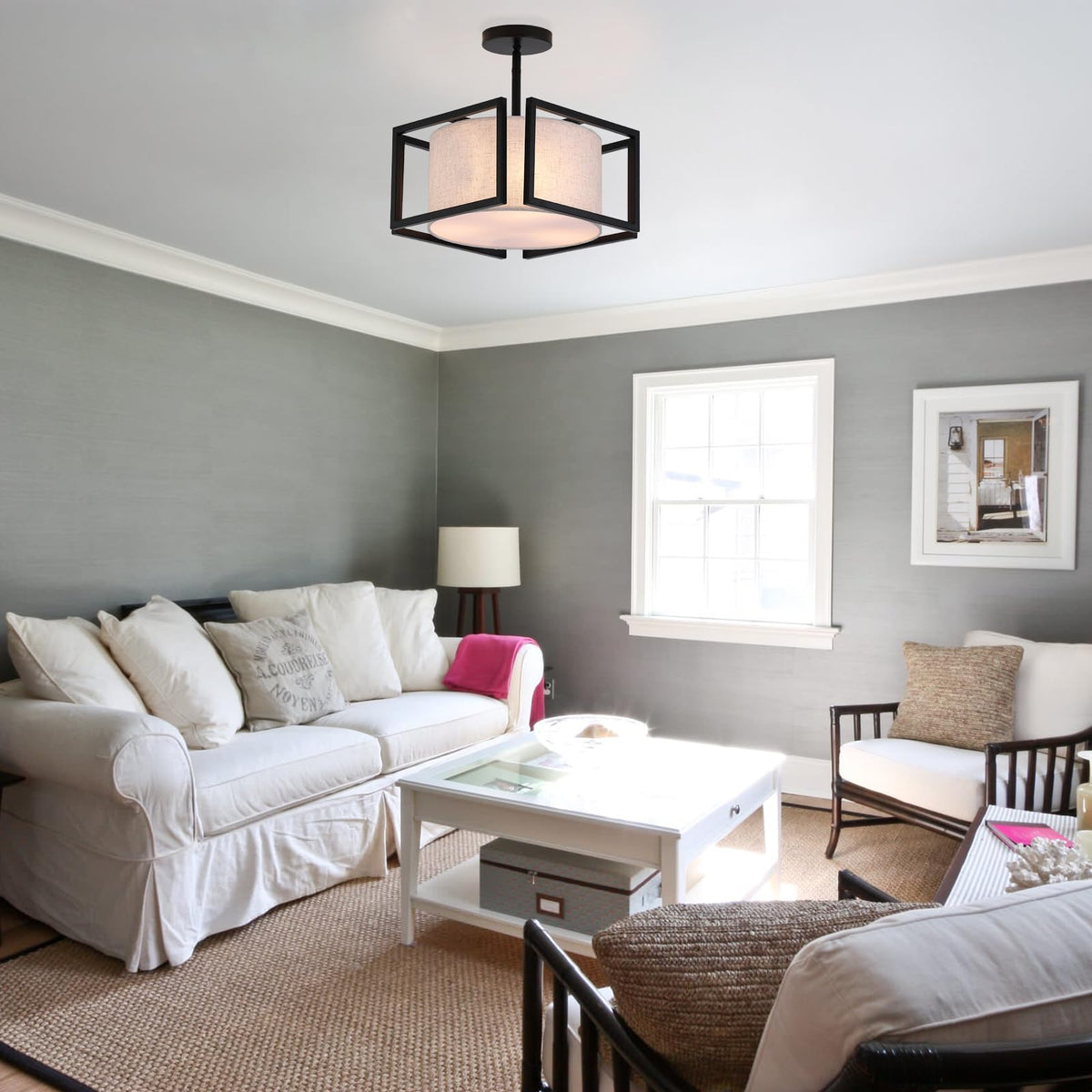 Vexagyle 3-Light Semi Flush Mount Ceiling Light Fixture,12.6 Modern Close To Ceiling Light With Fabric Linen Shade Black Metal