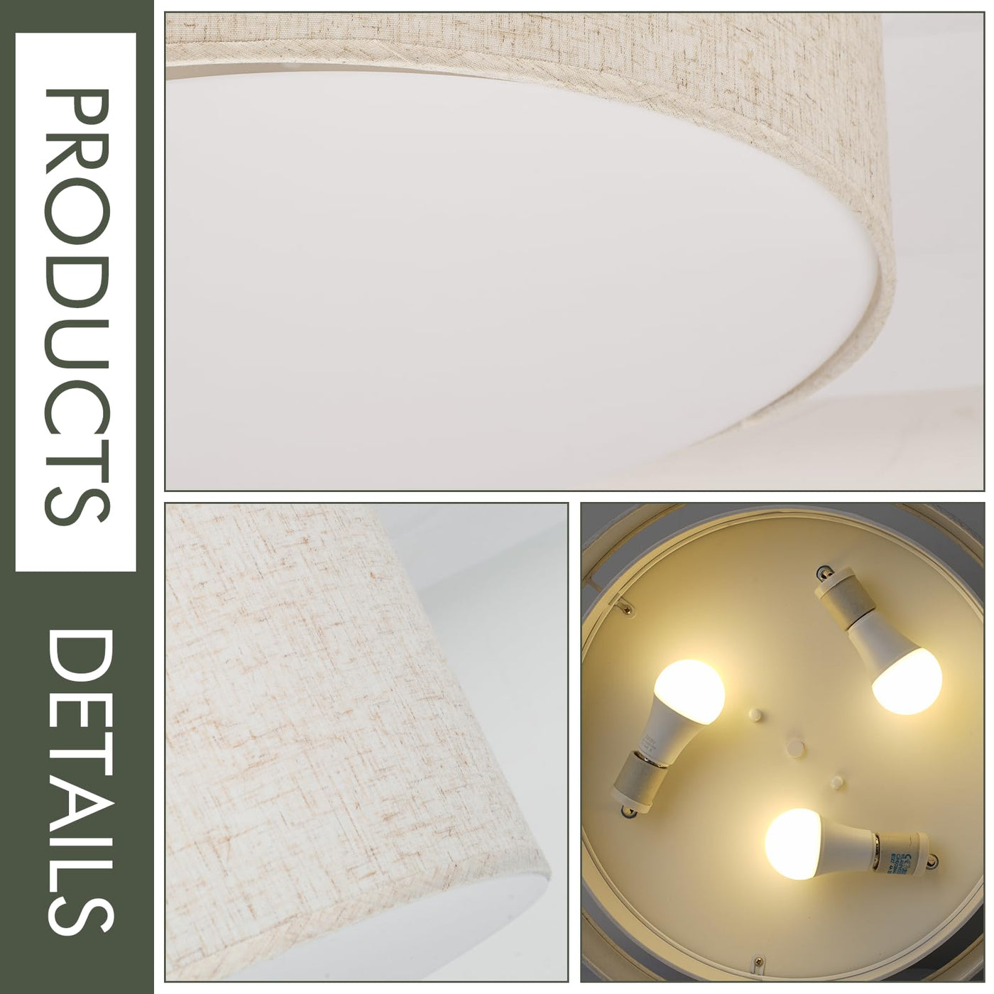 Modern Flush Ceiling Light Fixture With Double Drum Shade That Is 2 Tire Which Adds To The Overall Elegance Of The Lights,The Linen Texture Lampshade Of Bedroom Light Fixture Can Soften The Light, And The Eye-Protecting Design Can Provide Just The Right Brightness For Your Room. The Overall Lampshade Is Designed With A Large Circle Enclosing A Small Circle, Adding A Sense Of Modernity To The Space.