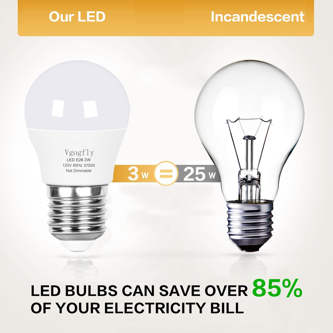 Vgogfly 3W Led Bulb Equivalent 25 Watt Light Bulbs