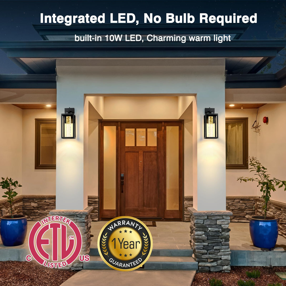 Vianis Large Exterior Lighting Fixtures, Black Outdoor Porch Lights For House, 10W Led Modern For Patio With Crystal Bubble Glas