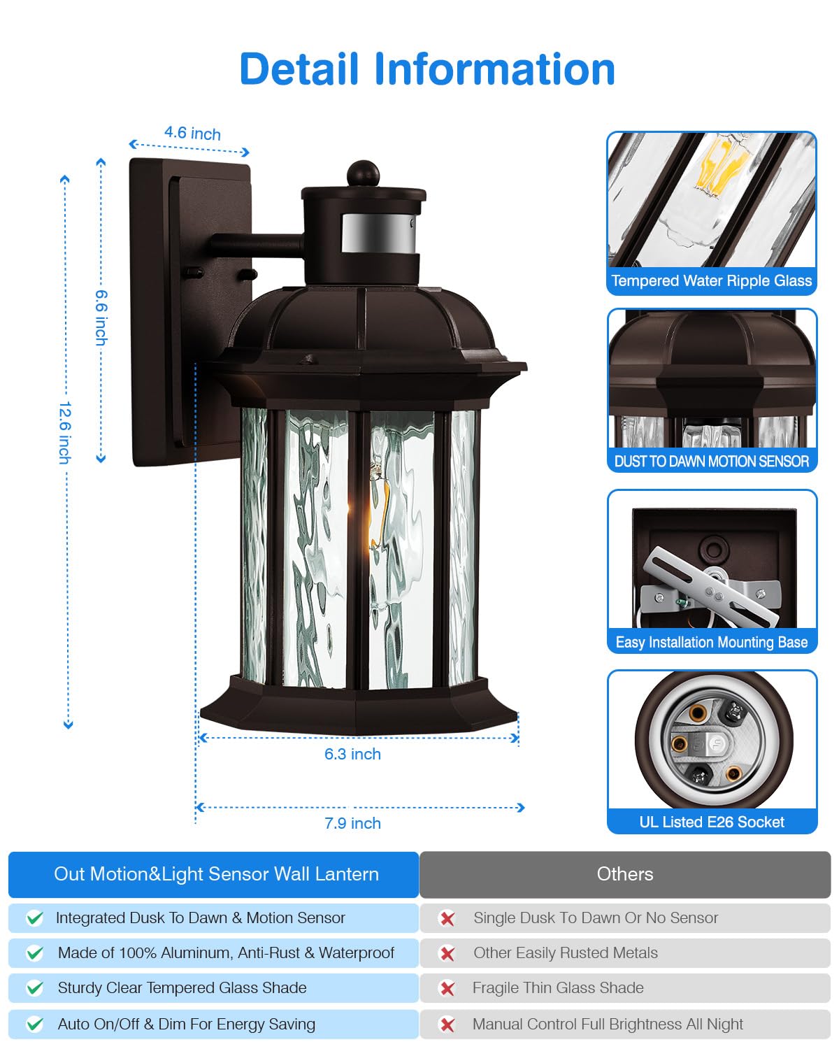 Introducing the VIANIS Advanced Motion Sensor Outdoor Wall Light, a perfect blend of elegance and innovative technology designed to illuminate your outdoor spaces with energy-efficient brilliance. Crafted from high-quality aluminum and featuring a stunning oil-rubbed bronze finish, this lighting fixture enhances the aesthetic appeal of any exterior area, including porches, patios, and garages.