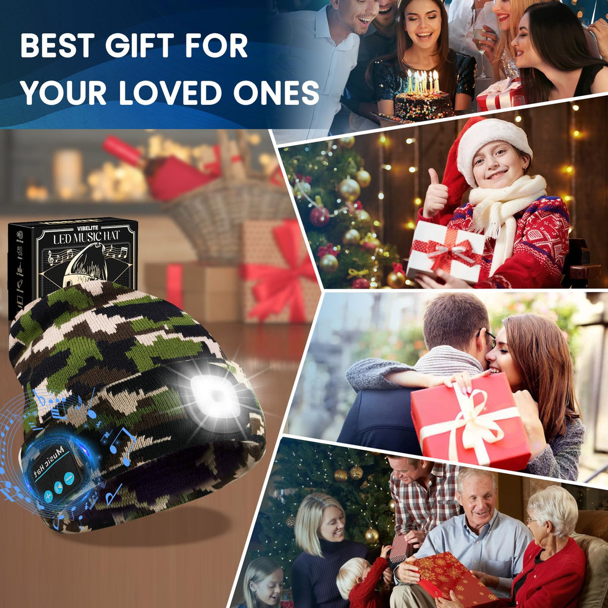 Vibhigh-standard Bluetooth Beanie Hat With Light Usb Rechargeable Led Headlamp With Wireless Headphones Christmas Gifts Stocking Stuffers For Men Teen Boys Him Husband Boyfriend Camouflage