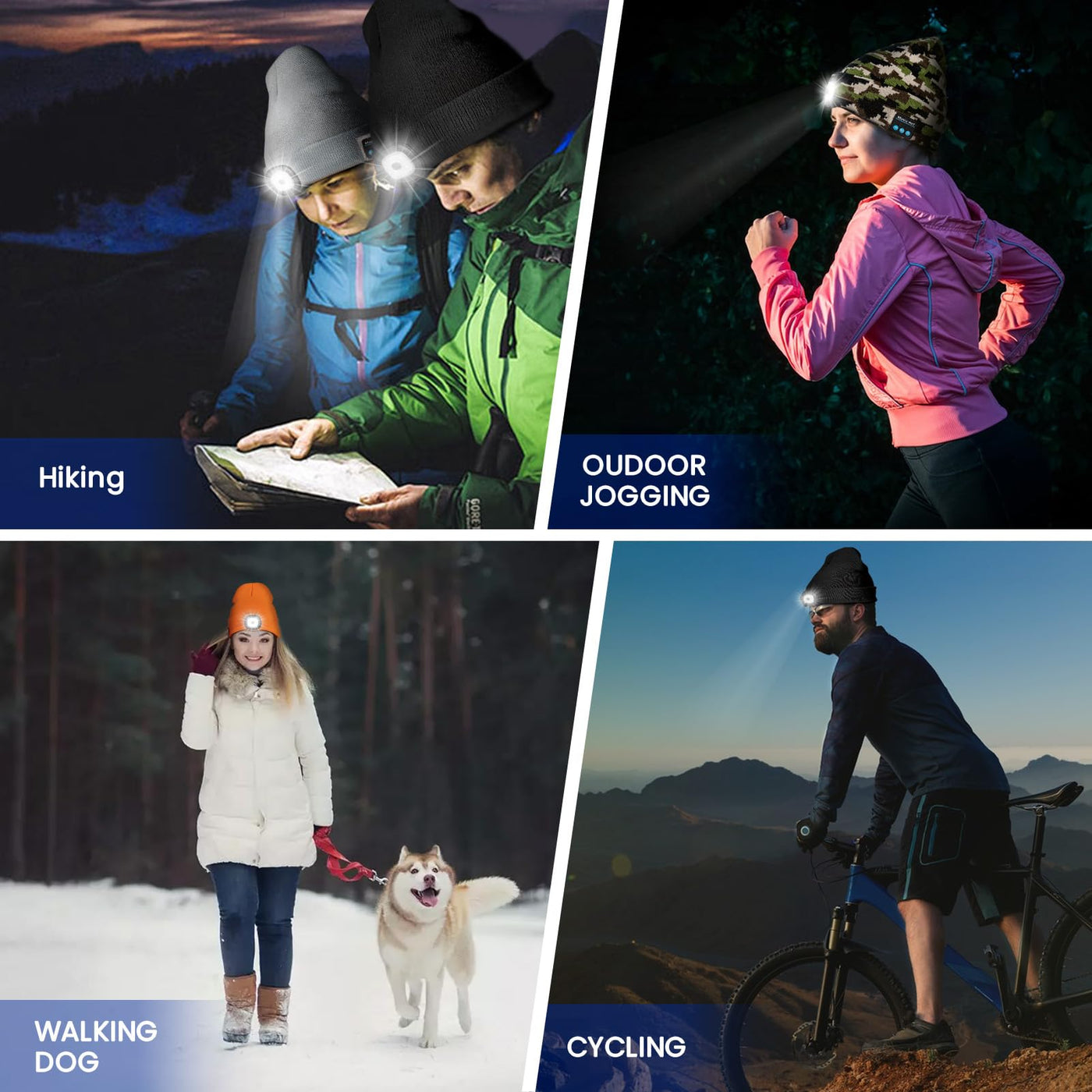 Vibhigh-standard Bluetooth Beanie Hat With Light Usb Rechargeable Led Headlamp With Wireless Headphones Christmas Gifts Stocking Stuffers For Men Teen Boys Him Husband Boyfriend Grey