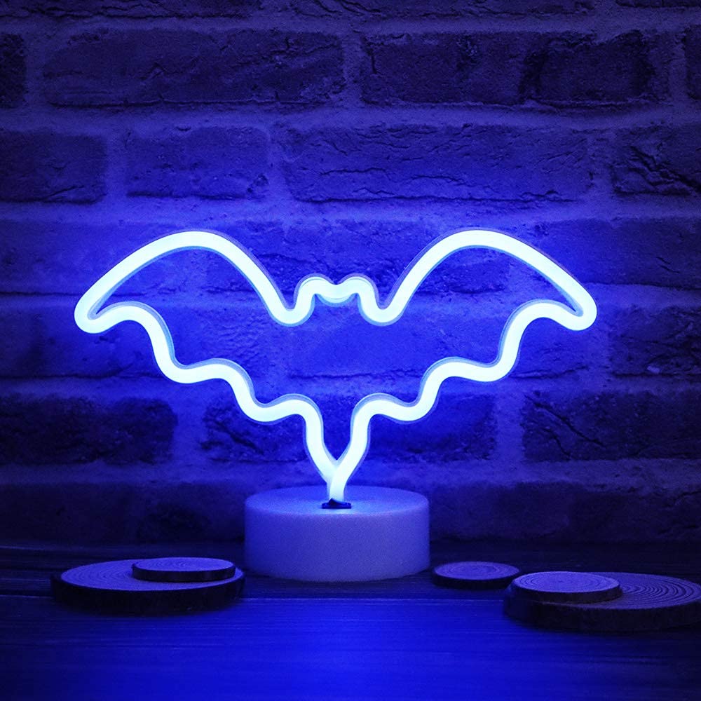Vicila Blue Led Neon Bat Light - Battery Operated Desk Lamp For Bedroom & Halloween Decor