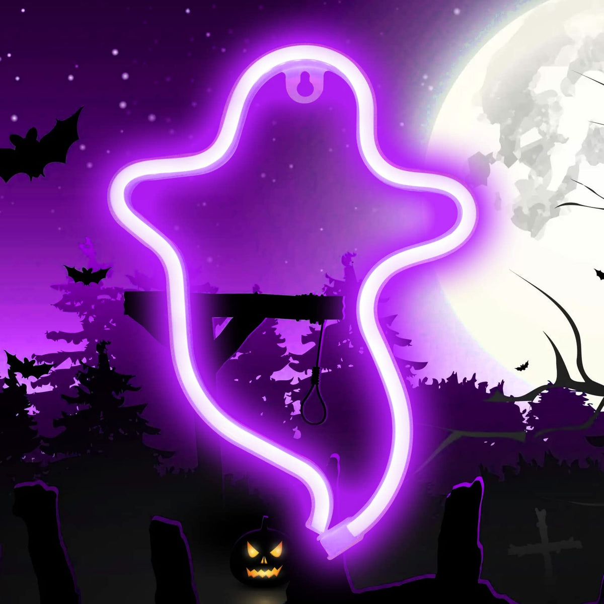 Vicila Purple Ghost Halloween Lights - Usb/Battery Operated Neon Gothic Lamp For Home & Party Decor