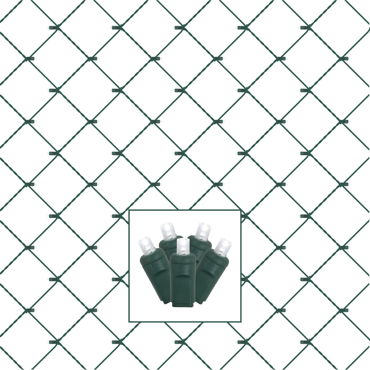 Vickerman 120 Pure White Wide Angle LED Christmas Net Twinkle Light Set. Brighten your Holidays with this Net light set featuring 120 Pure White Wide Angle LED Single Mold Twinkle lights on Green wire, a 12" lead wire, and an 4" end wire. This Net light set measures 4' high x 6' long, is UL approved, and has the ability to connect up to 17 sets. 9.6 watts.