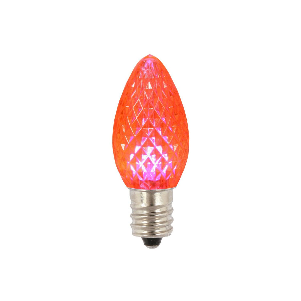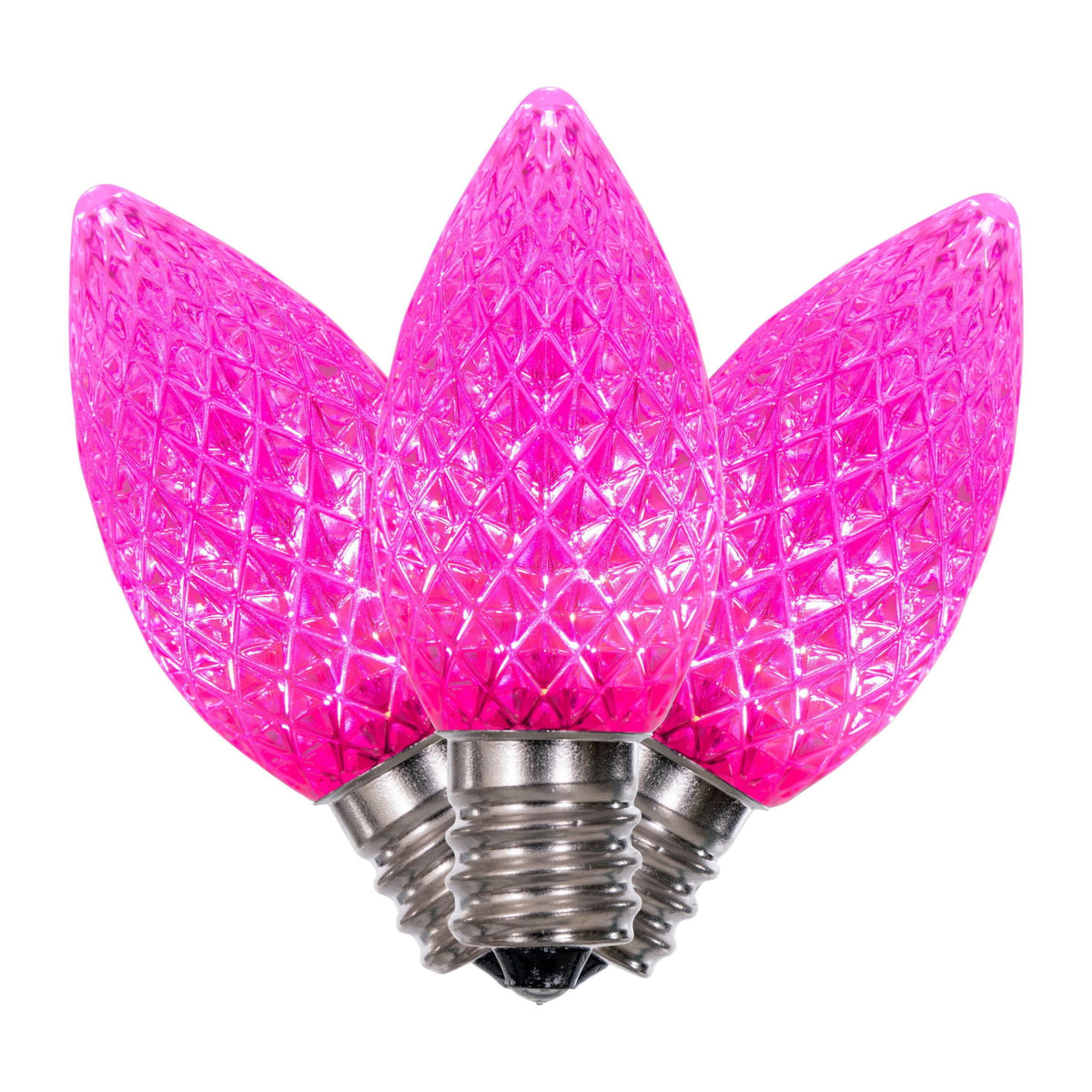 Vickerman C7 LED Pink Faceted Replacement Bulb. Features: E12 Nickel Base, 120 Volt, .38 Watts, Dimmable, 3pc LED, package of 25 bulbs.