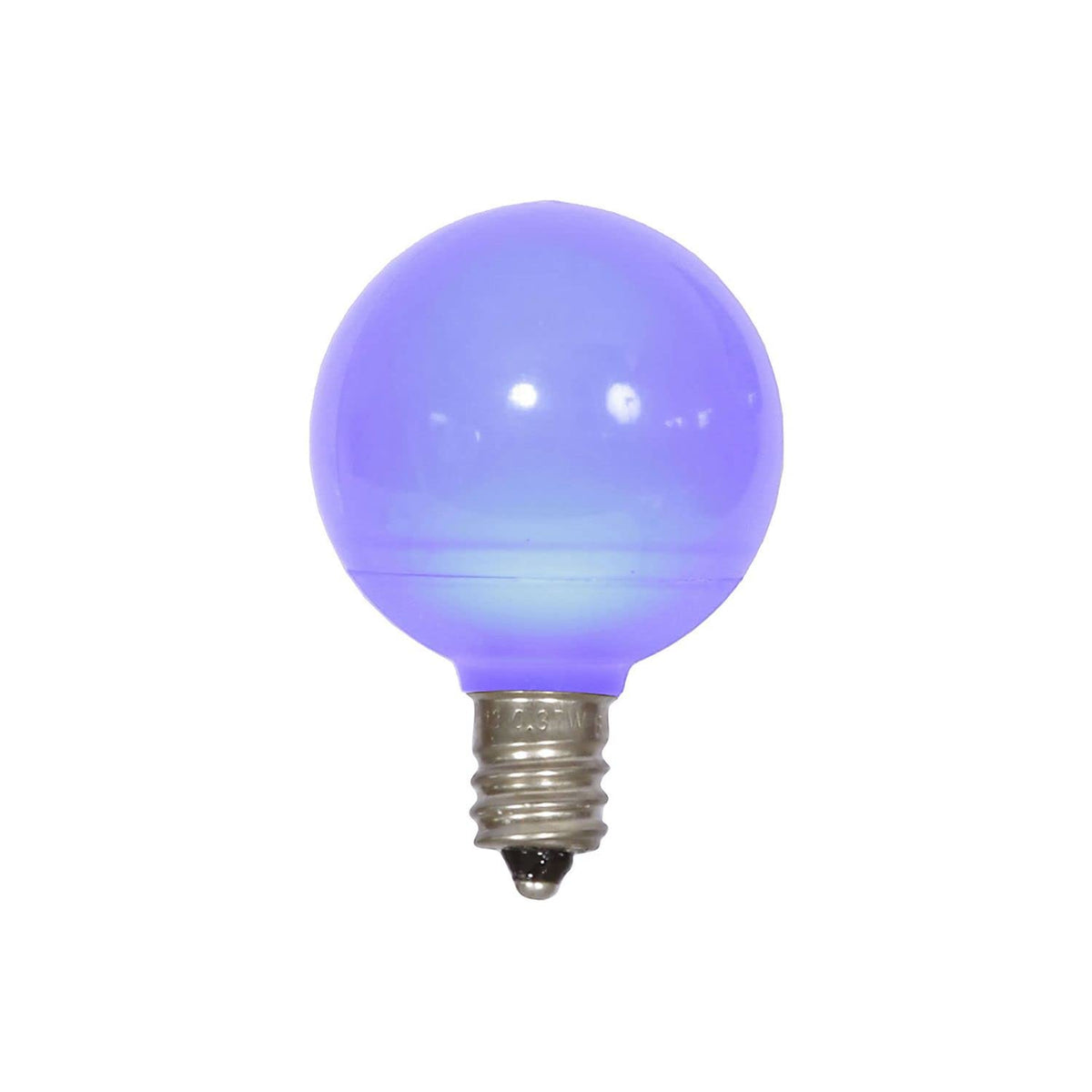 Vickerman G40 Blue Ceramic LED Replacement Bulb. Features: E12 Nickel Base, 120 Volt, .96 Watts, Dimmable. Comes as a package of 25 bulbs.