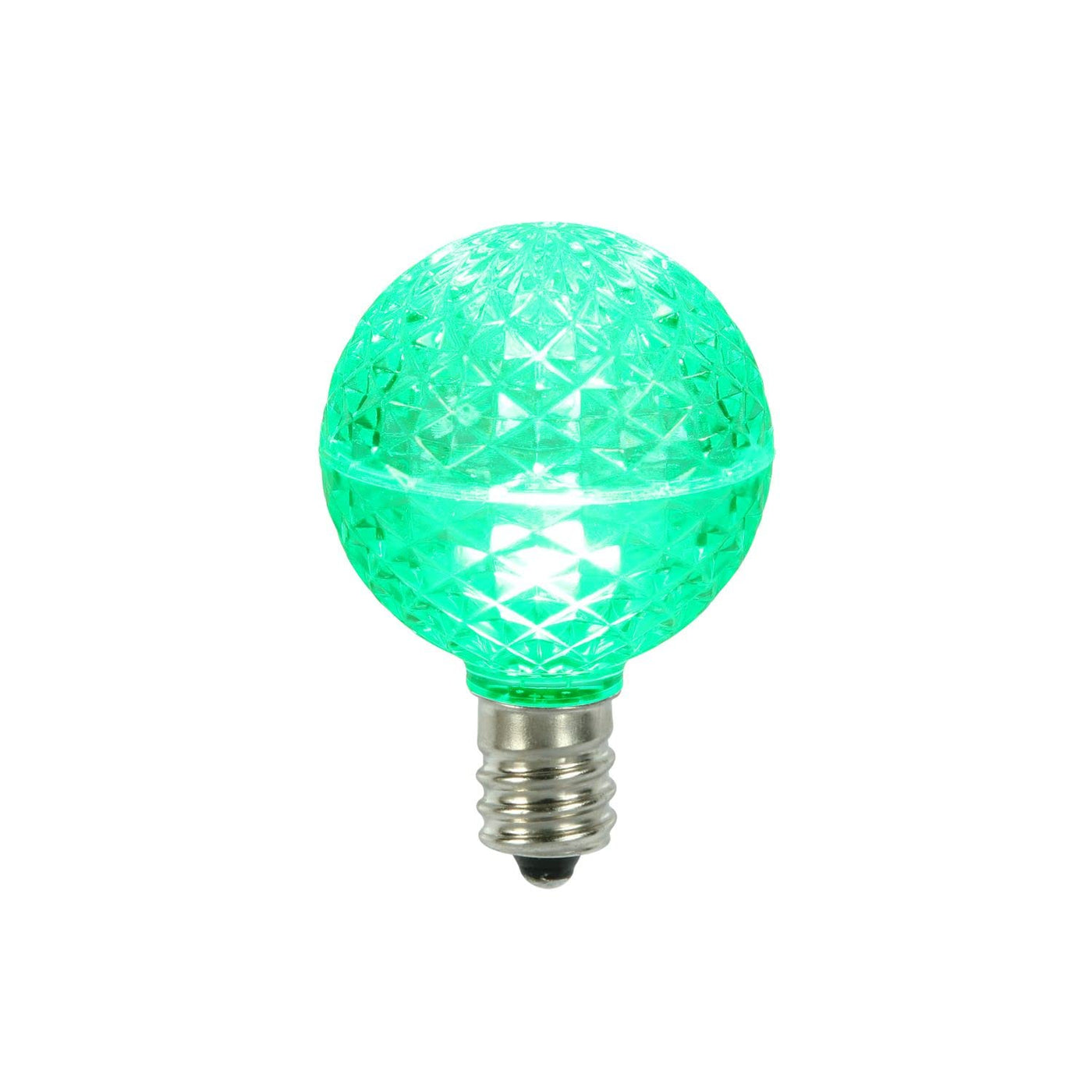 G50 LED Green Faceted Replacement Bulb, E17/C9 Nickel Base . 45 Watts, Dimmable, 10 Bulbs per Pack