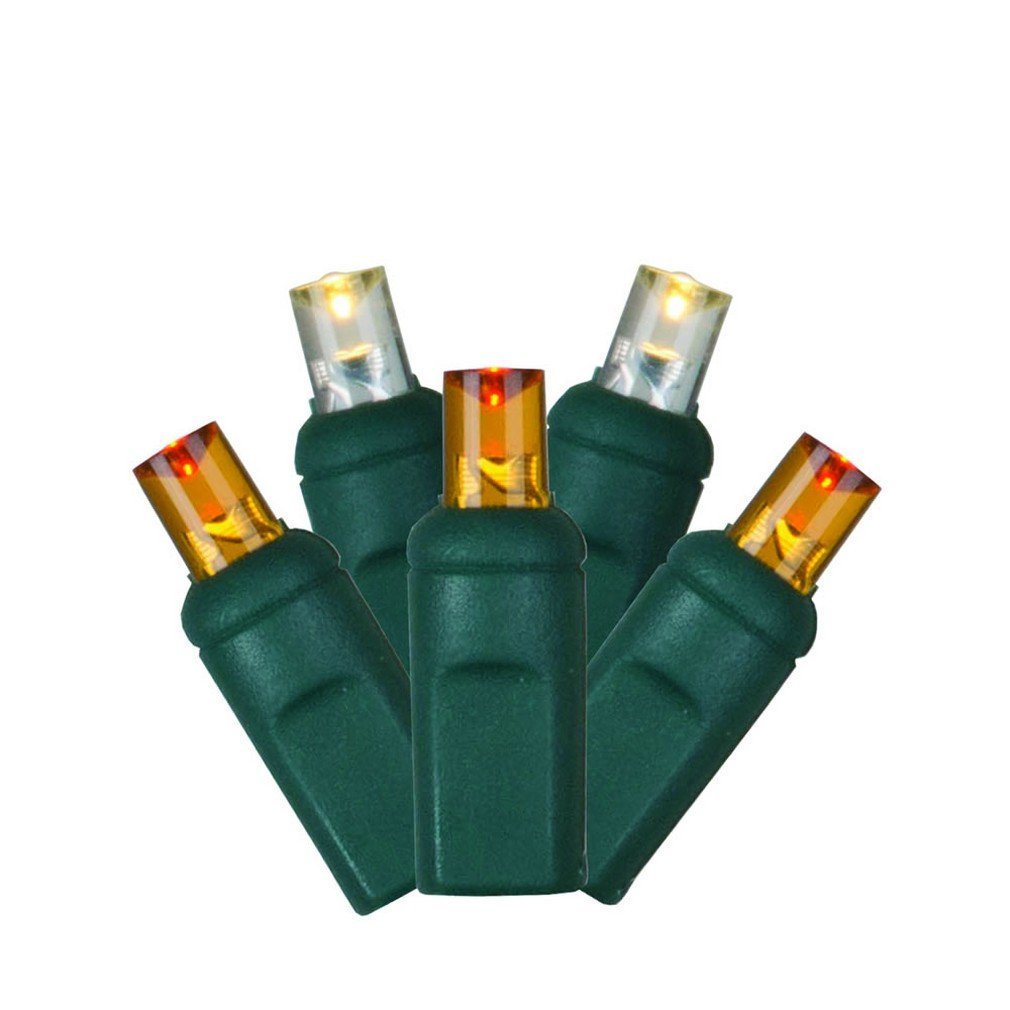 25' led single mold wide angle light set features a mix of 50 frosted Warm White, amber, and Warm White lights on green wire with 6spacing between bulbs. This light set has the ability to connect to as many as 45 sets. 4.8 Watts, 04 amps. Vickerman company is an importer and wholesaler of quality seasonal decorations including traditional and realistic artificial Christmas trees, wreaths and garlands. In addition the company offers other realistic looking holiday foliage, Giant Christmas trees and a full line of unique display trees.