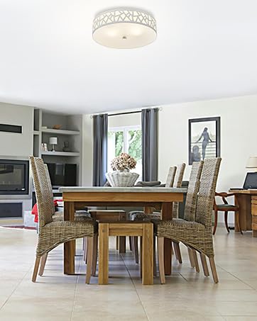 Q: What materials are used in the construction of the VICNIE ceiling light?A: The VICNIE Flush Mount Ceiling Light is made of high-quality metal with multiple layers of paint to ensure durability and resistance to rust and corrosion. Additionally, it features white frosted glass panels for optimal lighting.