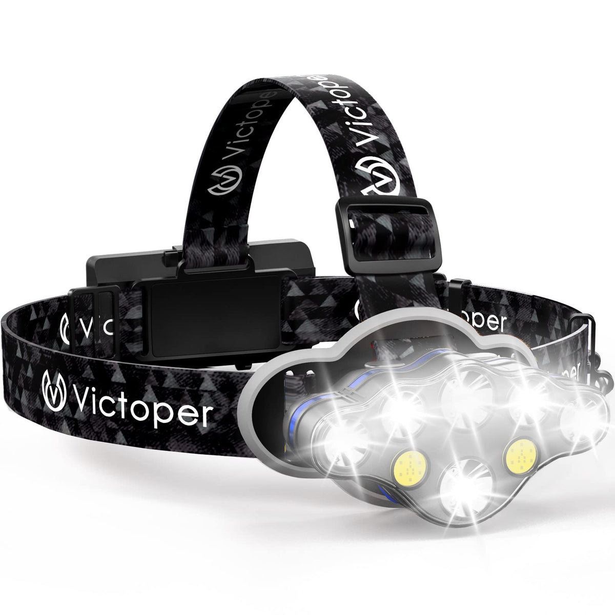 Victoper Rechargeable Headlamp, 8 LED High Lumen Bright Head Lamp with Red Light, Lightweight USB Head Light, 8 Mode Waterproof