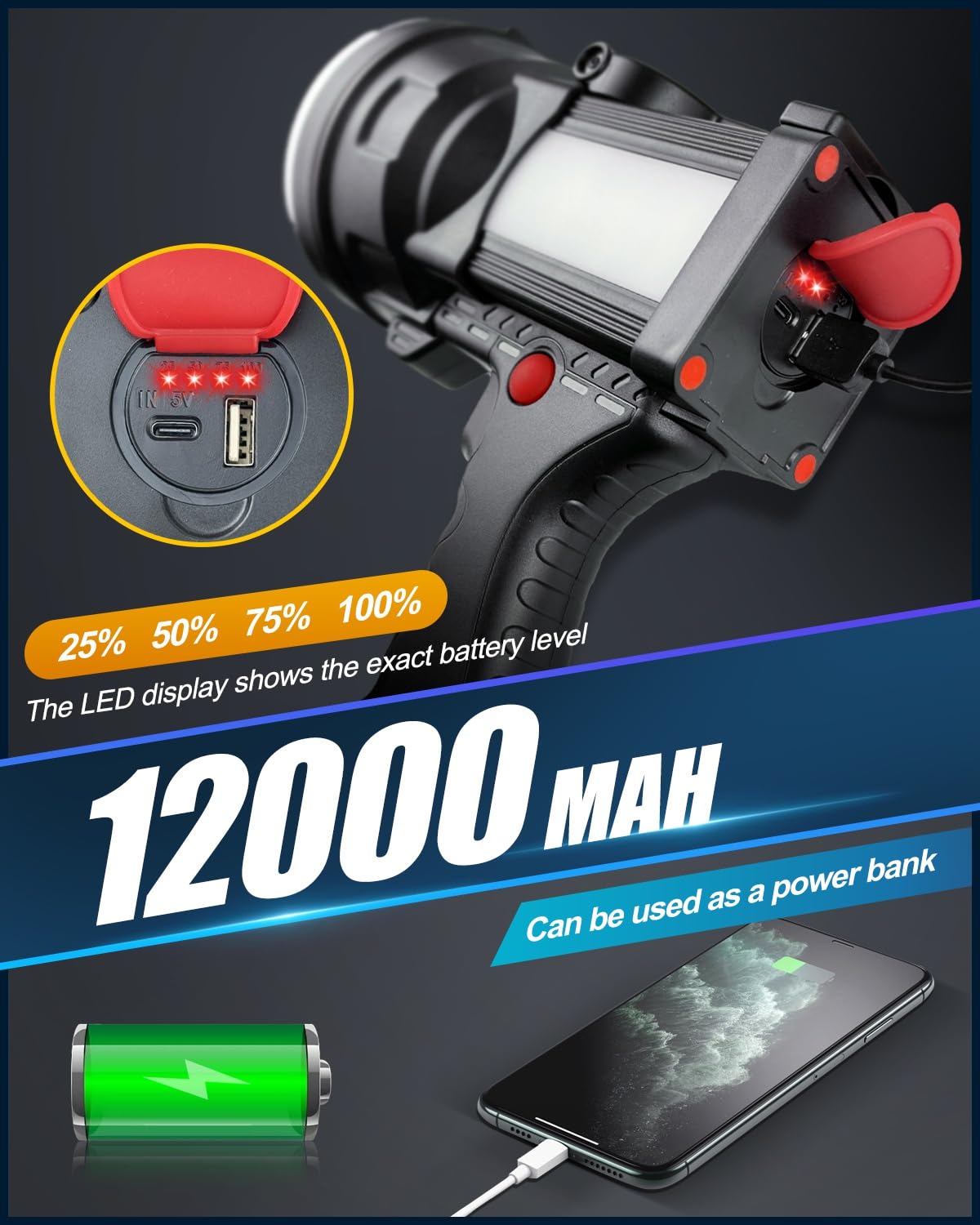 Victoper Spotlight for Camping, 1500 Lumens Bright Handheld Spot Light, 12000 mAh Rechargeable LED Flashlight, 3+3 Modes 4 Color