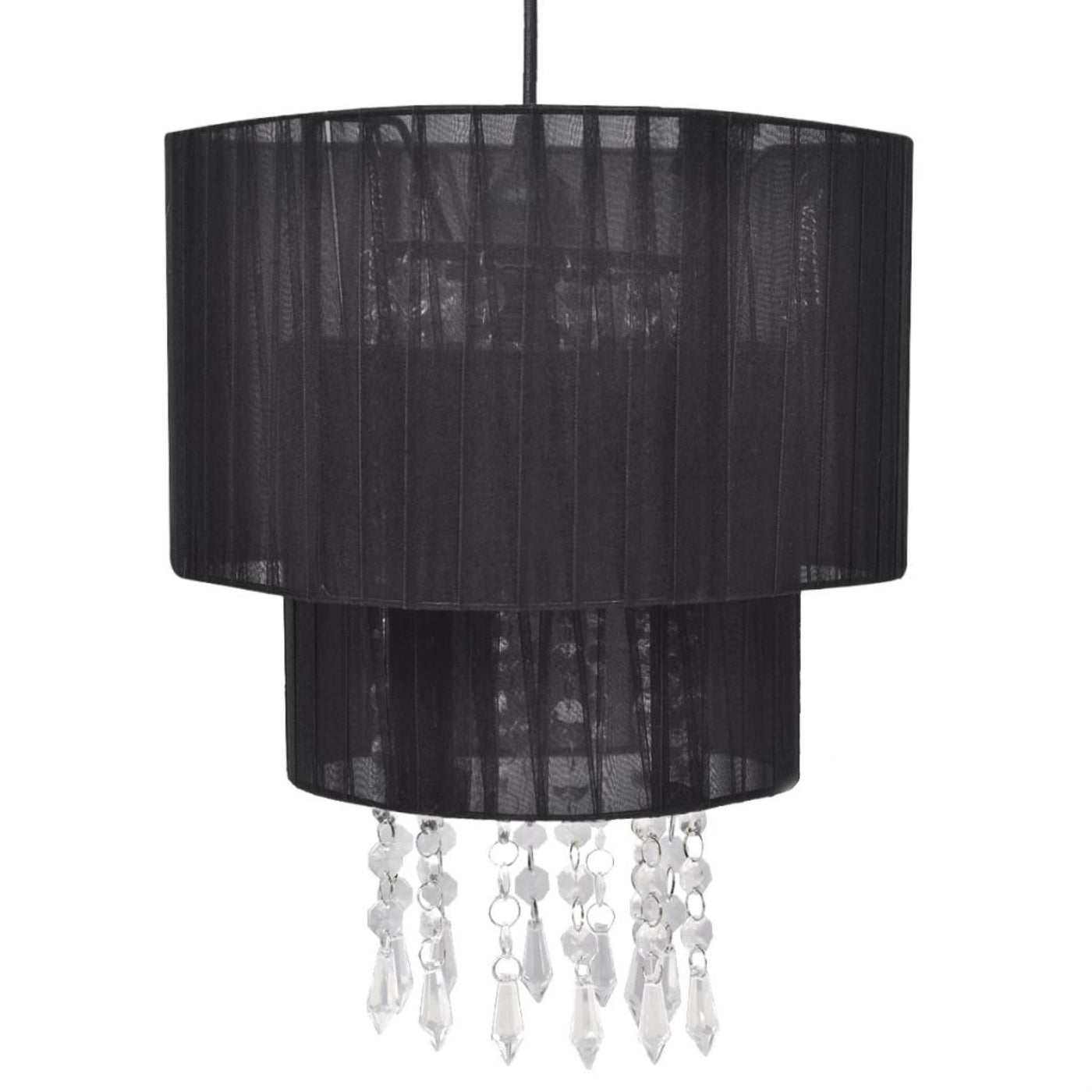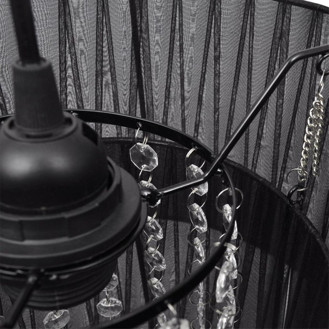 vidaXL Chandelier Black 11 x13 - 241839, The gorgeous chandelier, with a durable metal frame, is covered with a black yarn lampshade. It is surely an eye-catcher in any environment and ideal for both private and industrial purposes. The high-quality crystal beads, made of acrylic, shine with real clarity, and will capture and reflect the light effectively. With this elegant pendant lamp, you will be able to decorate your home in a luxurious way. Please note that the bulbs are not included in delivery.