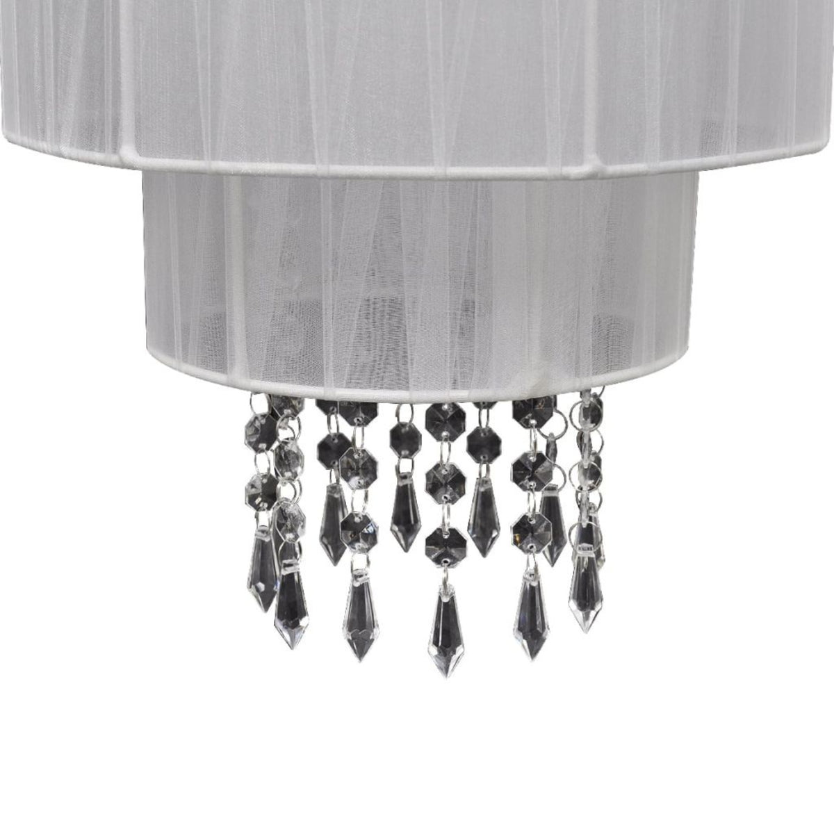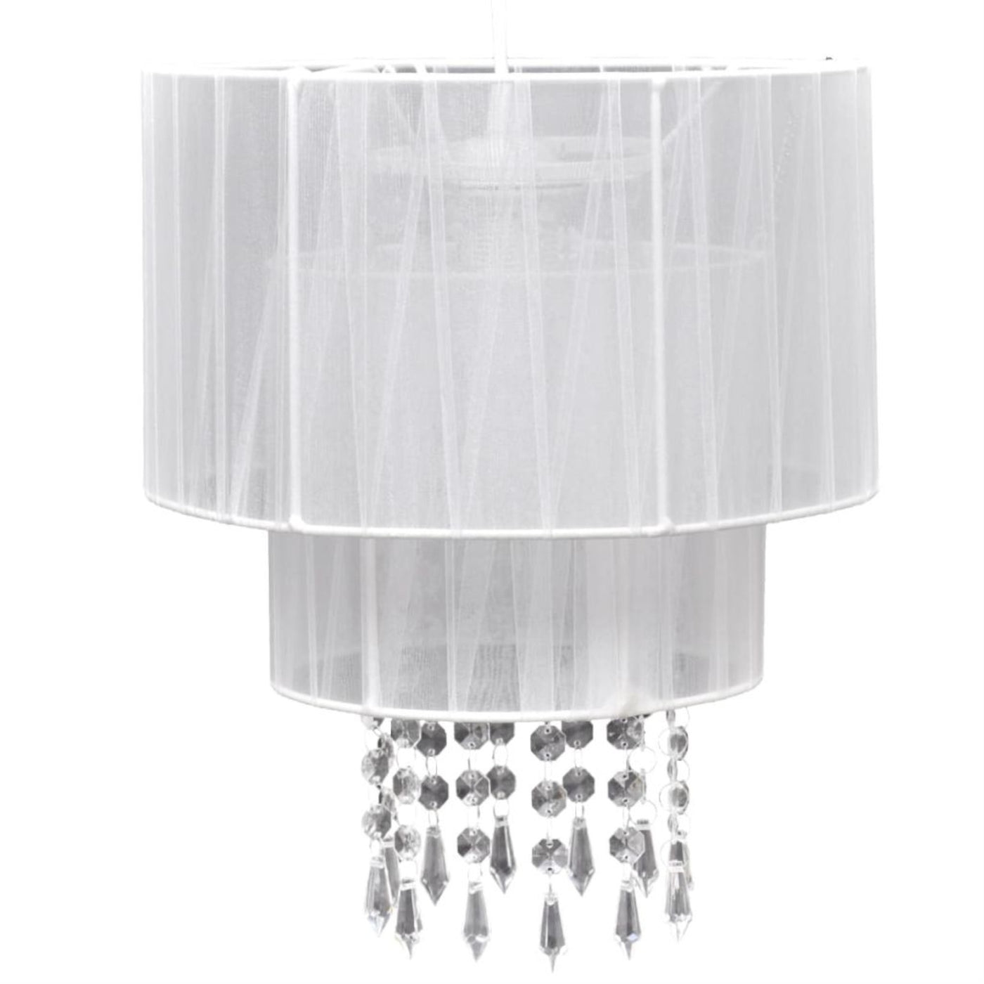 vidaXL Chandelier White 11 x13 - 241840, The gorgeous chandelier, with a durable metal frame, is covered with a white yarn lampshade. It is surely an eye-catcher in any environment and ideal for both private and industrial purposes. The high-quality crystal beads, made of acrylic, shine with real clarity, and will capture and reflect the light effectively. With this elegant pendant lamp, you will be able to decorate your home in a luxurious way. Please note that the bulbs are not included in delivery.