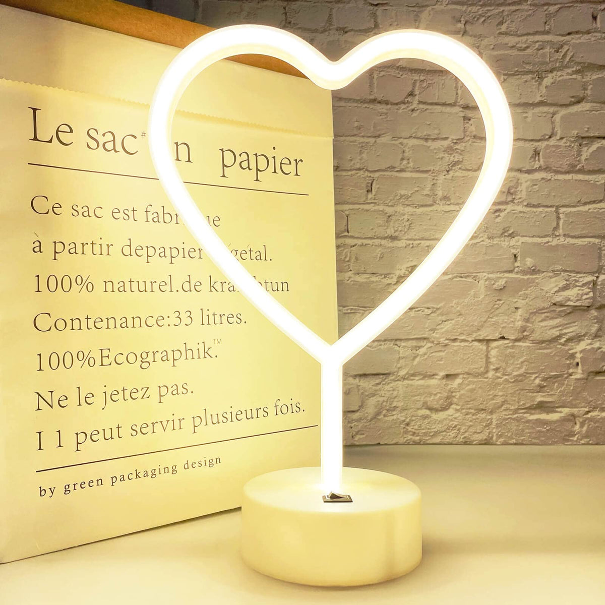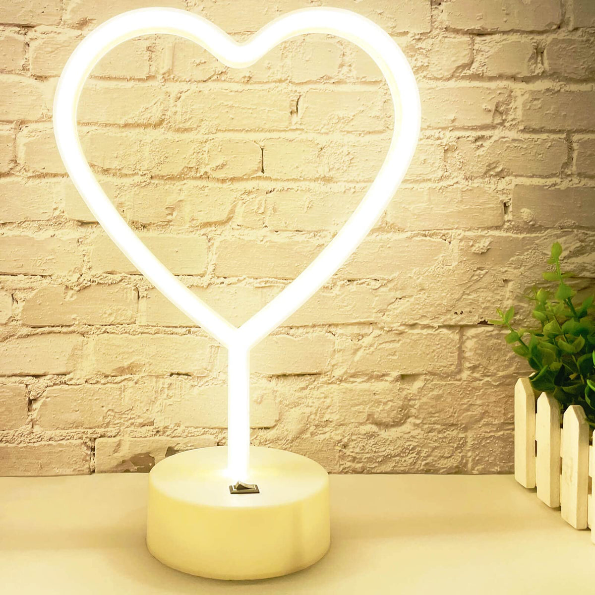 VIFULIN Heart Shaped Led Heart Lamp Neon Heart Lights Decor, Light up Heart Led Light Sign Heart Neon Sign with Base, Neon Heart