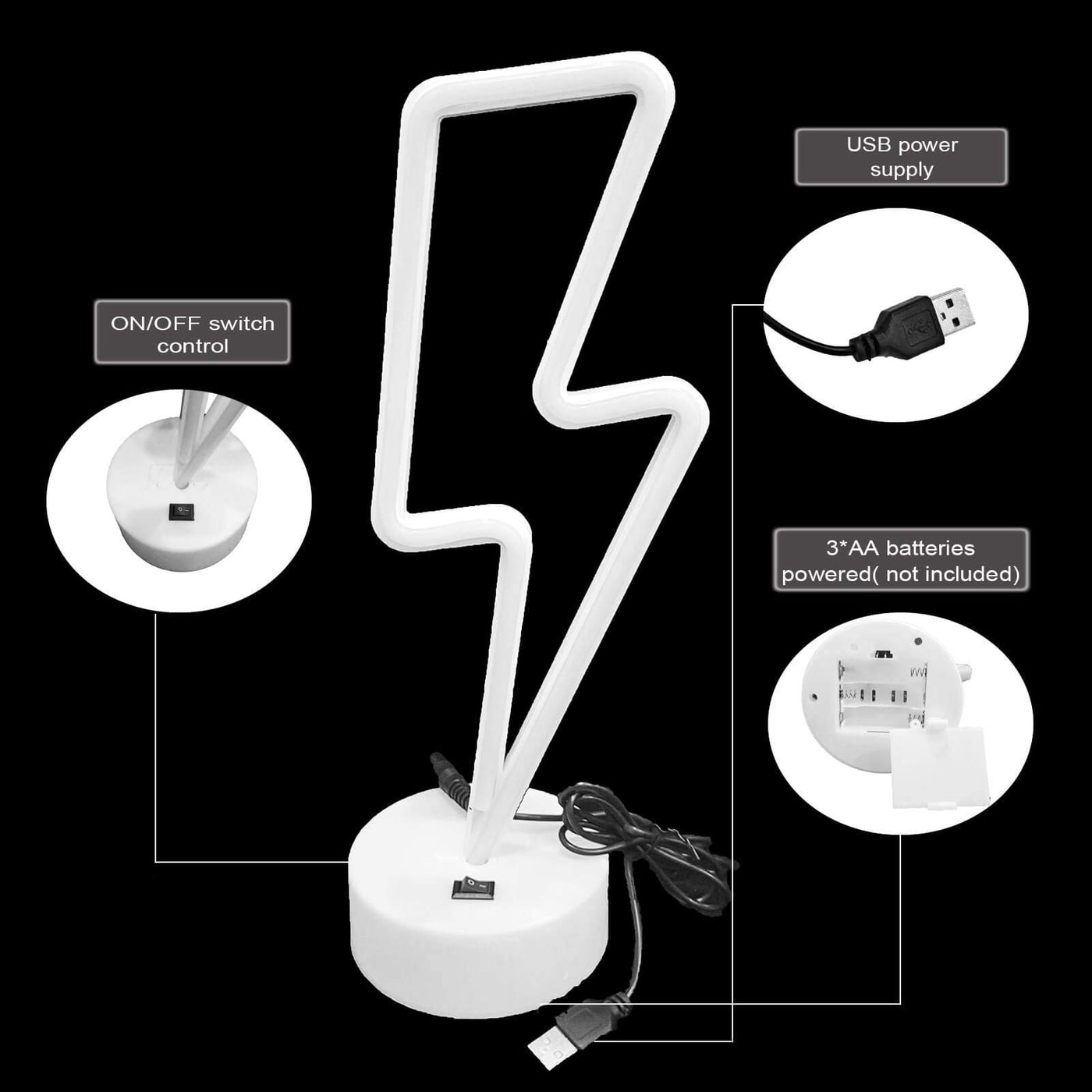 - USB and Battery Operation: Enjoy versatile power options with the included USB cable and a 3xAA battery box (batteries not included). Easily place the lightning bolt lamp anywhere to create a lively atmosphere.