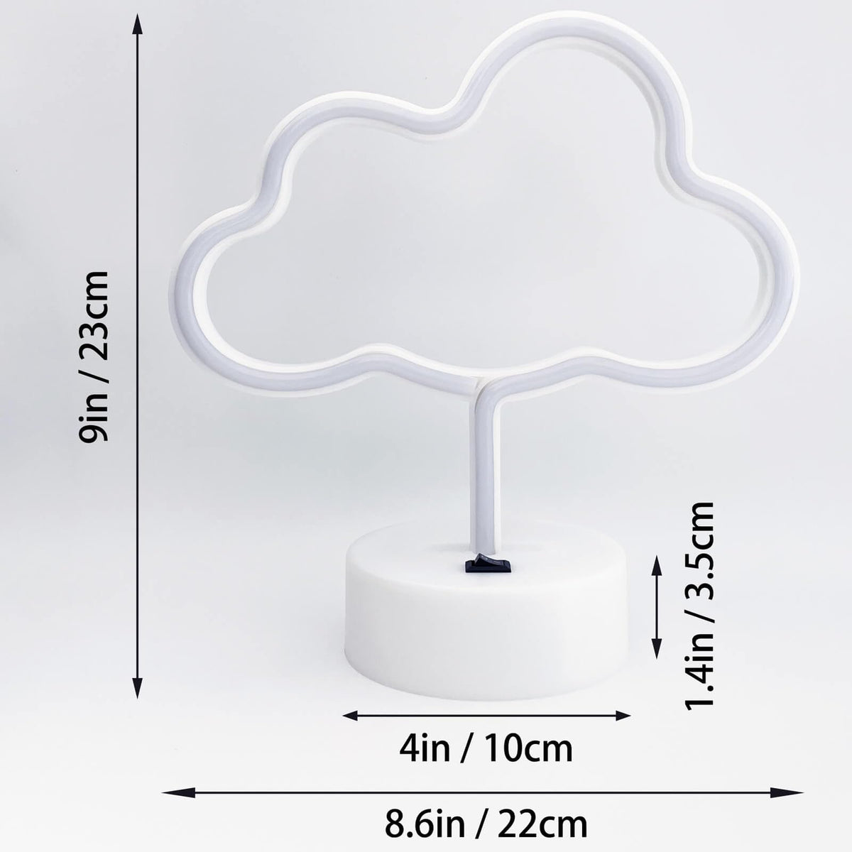 Q: What are the dimensions of the VIFULIN Cloud Neon Sign?A: The VIFULIN Cloud Neon Sign measures 7 inches in width, 10.5 inches in length, and has a thickness of 0.6 inches, making it a perfect size for bedroom decor or table displays.