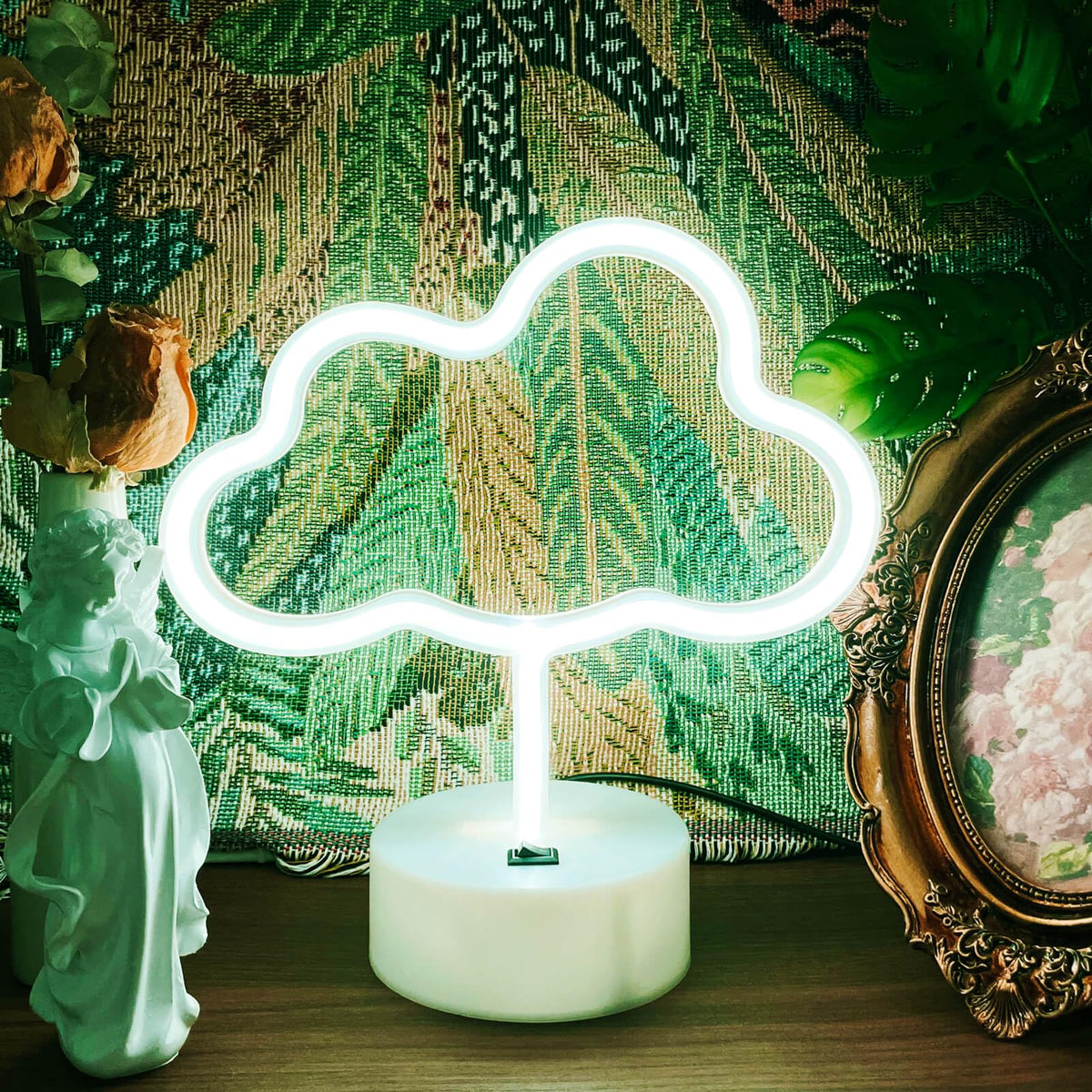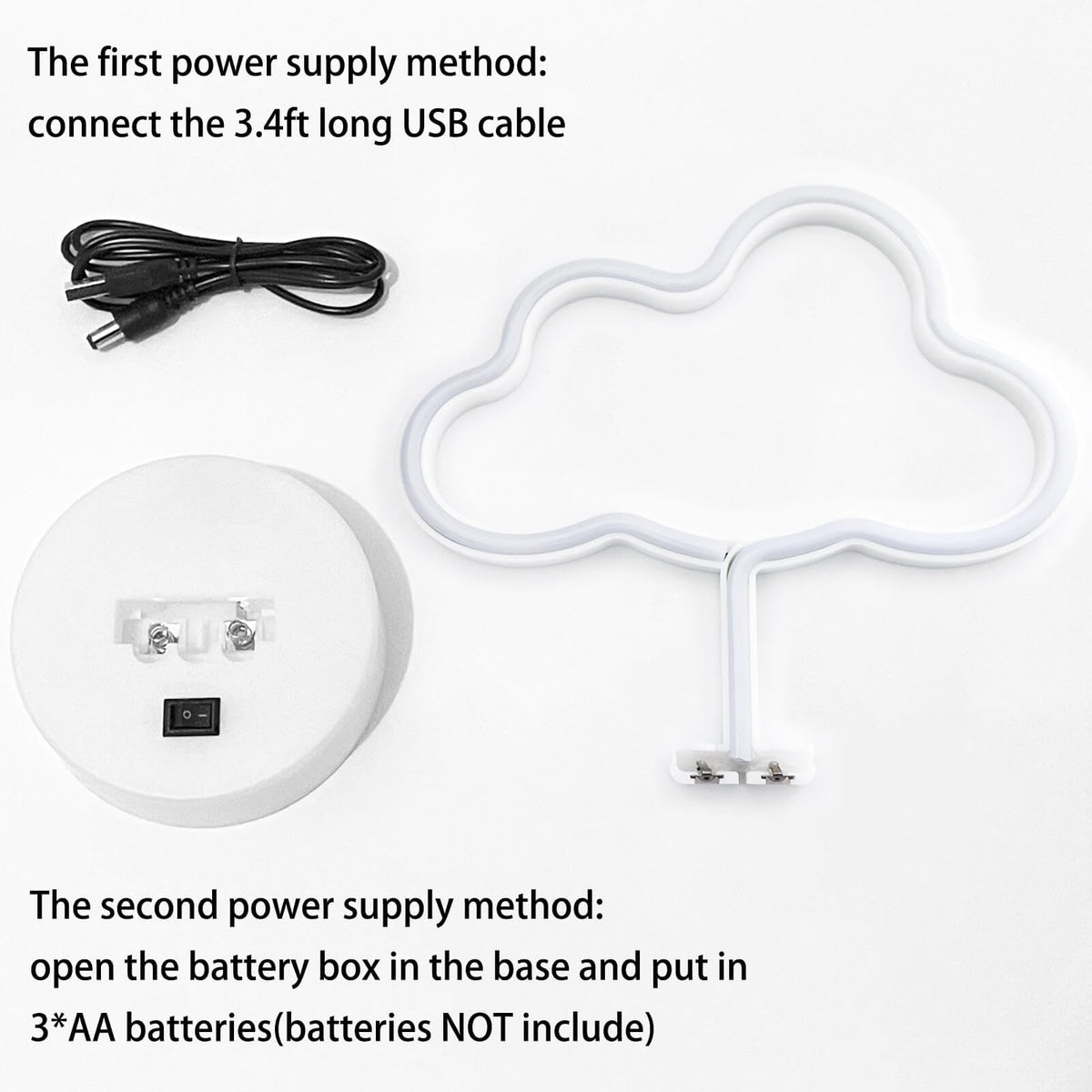 - **Versatile Power Options**: Enjoy the convenience of powering the neon cloud lamp with either 3xAA batteries (not included) or via USB. This flexibility allows you to place it anywhere in your home without worrying about proximity to an outlet.