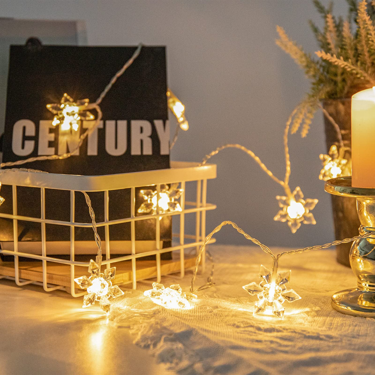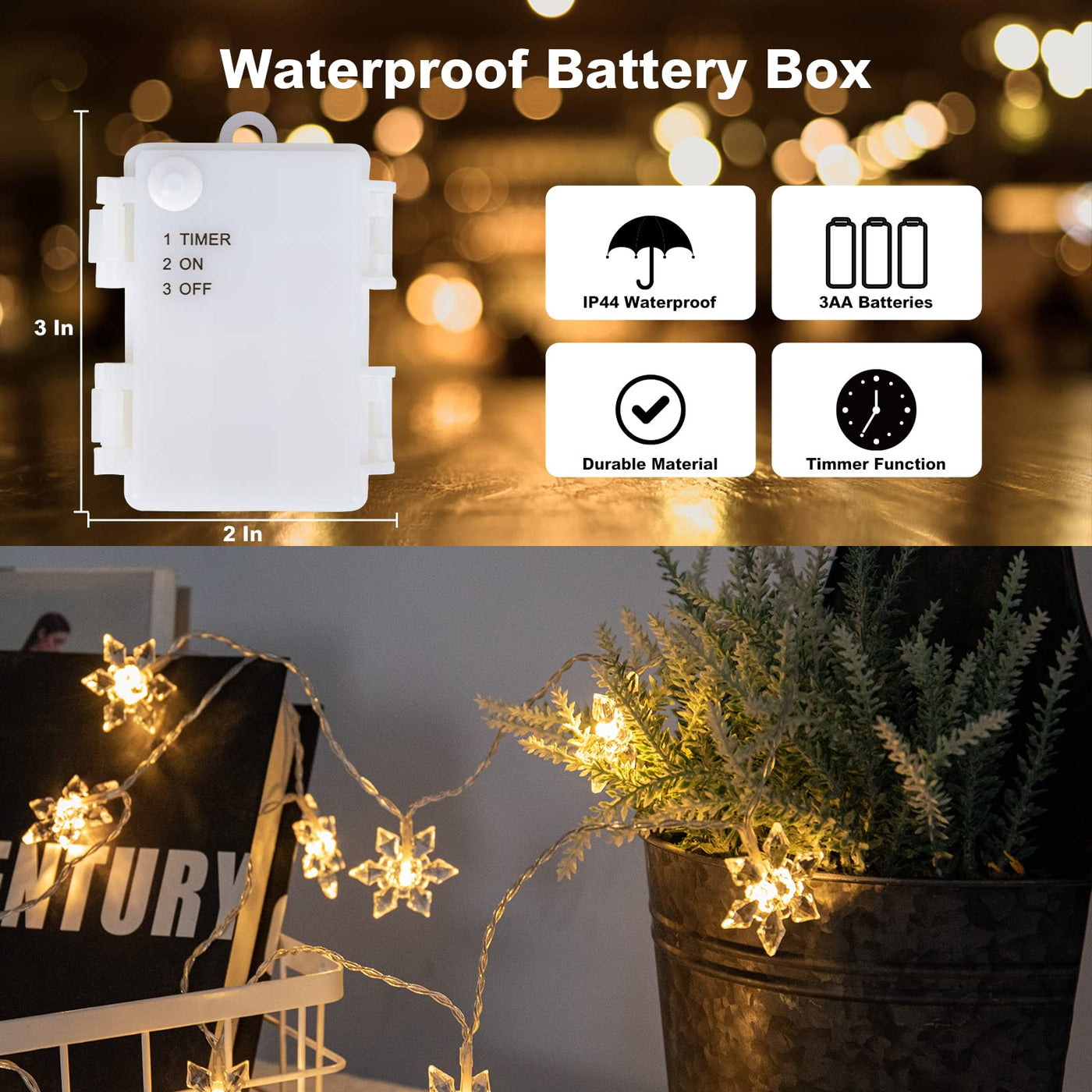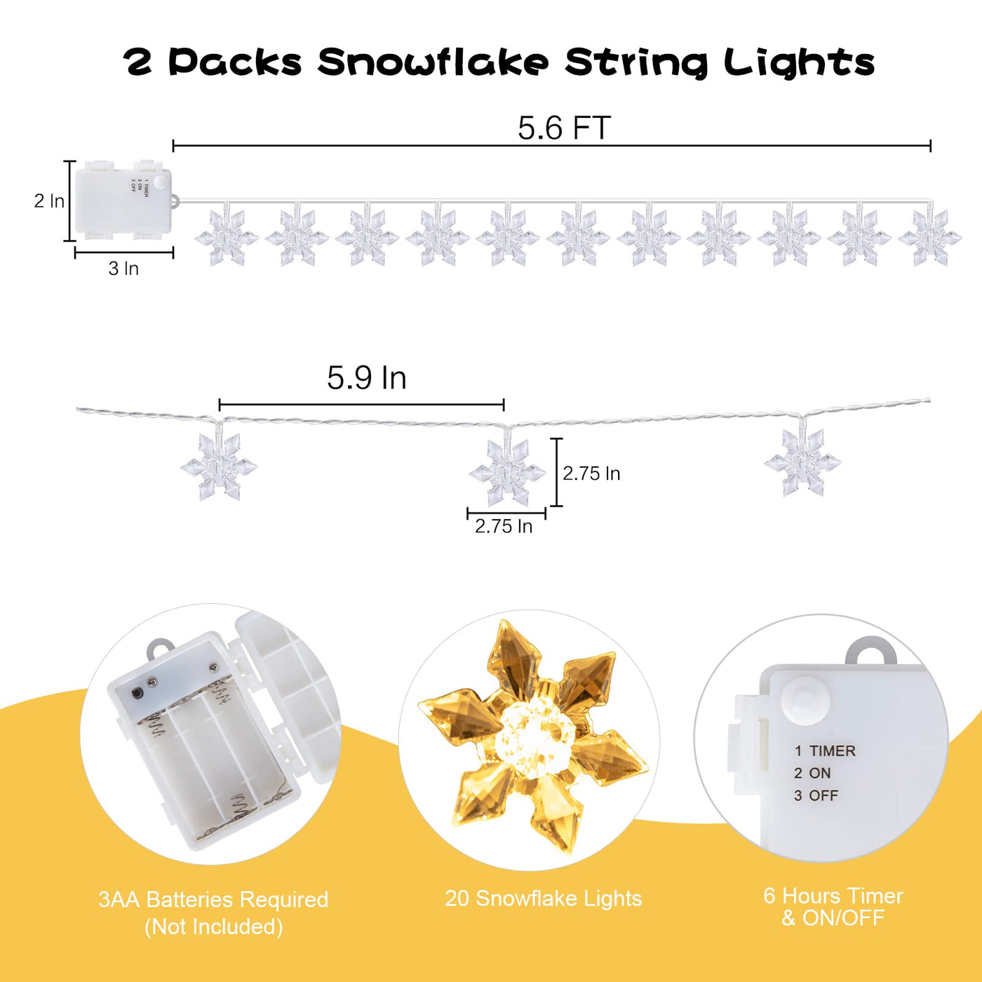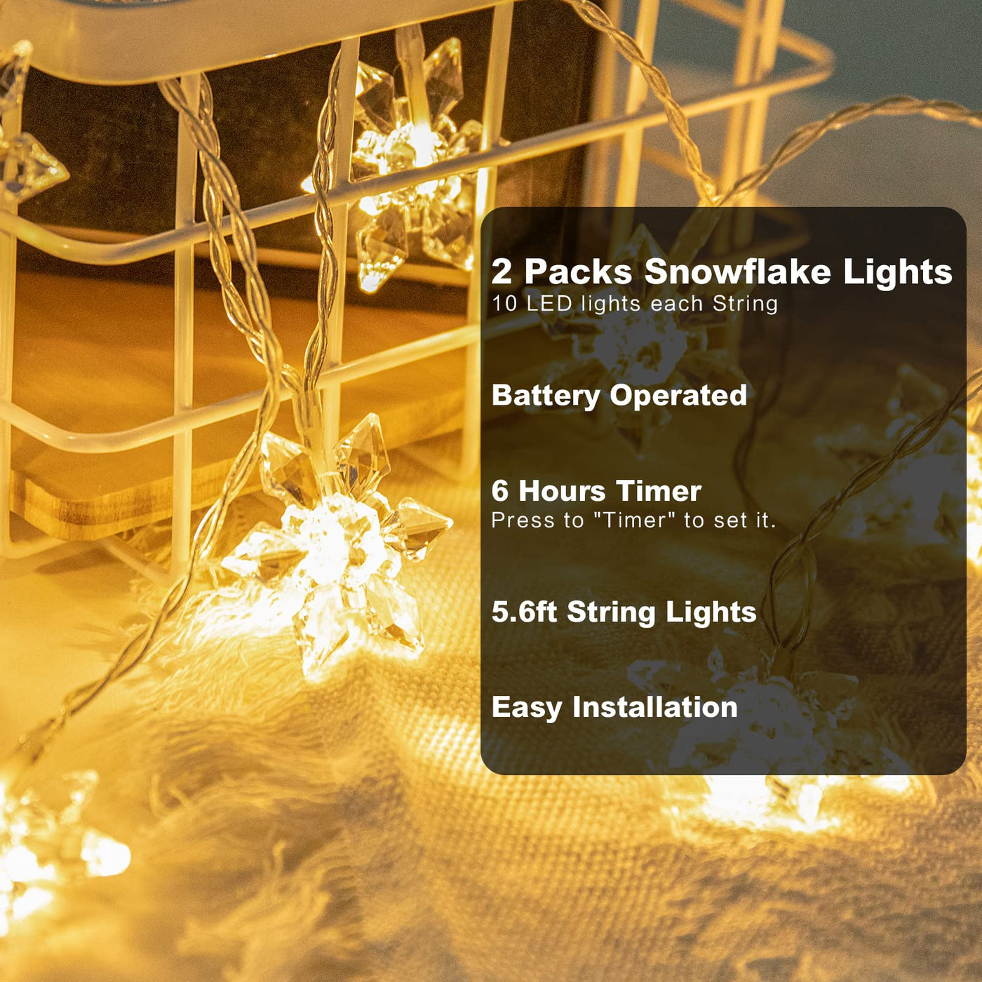 2 Packs Christmas Snowflake Lights - 20 LED Snowflake String Lights Battery Operated with Timer Indoor Xmas Fairy Lights for Bedroom Party Window Holiday Decoration