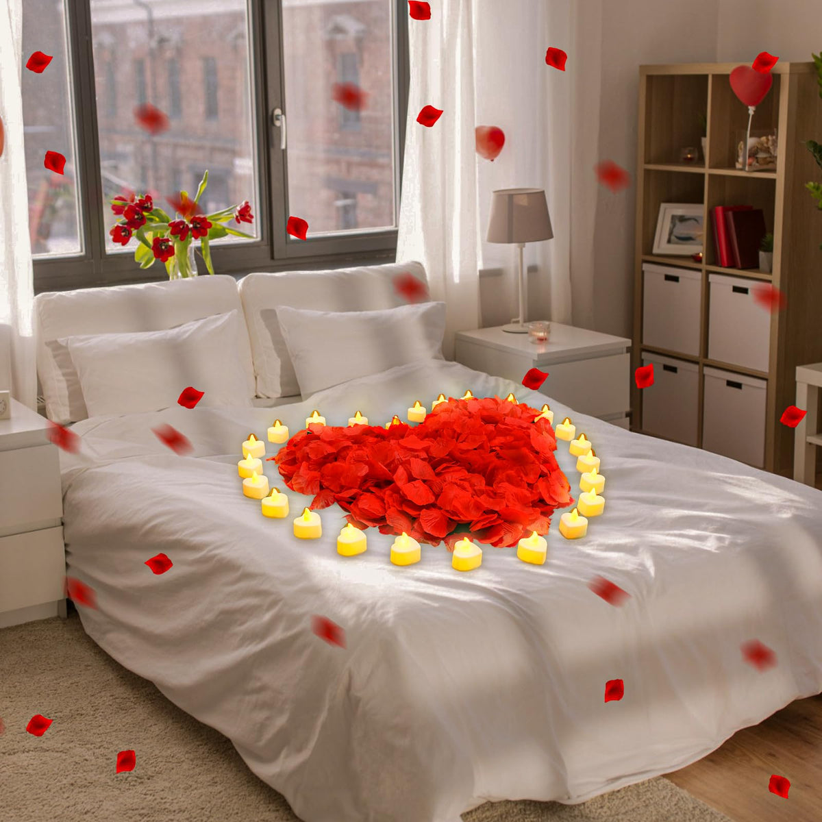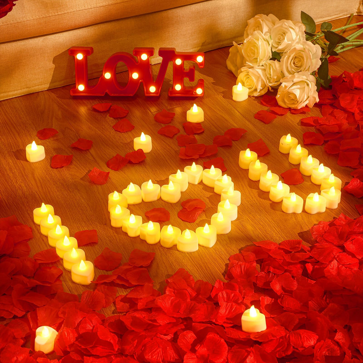 Q: Can the rose petals and LED candles be reused for future events?A: Absolutely! Both the artificial rose petals and the LED candles are designed for long-term use. The petals are durable and can be easily cleaned, while the LED candles can be reused by simply replacing the batteries, making them a cost-effective solution for your decorative needs.