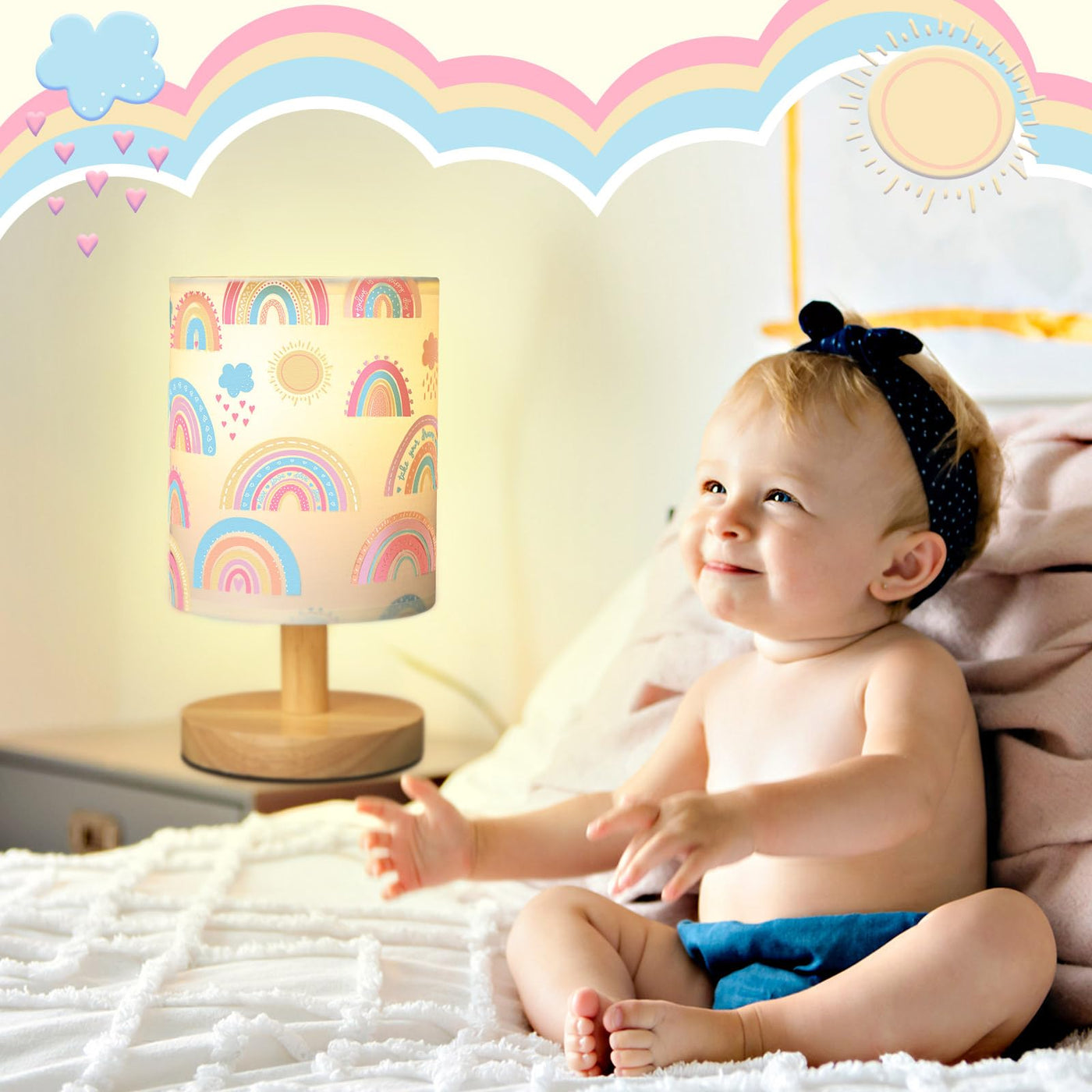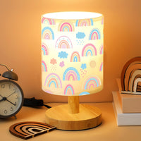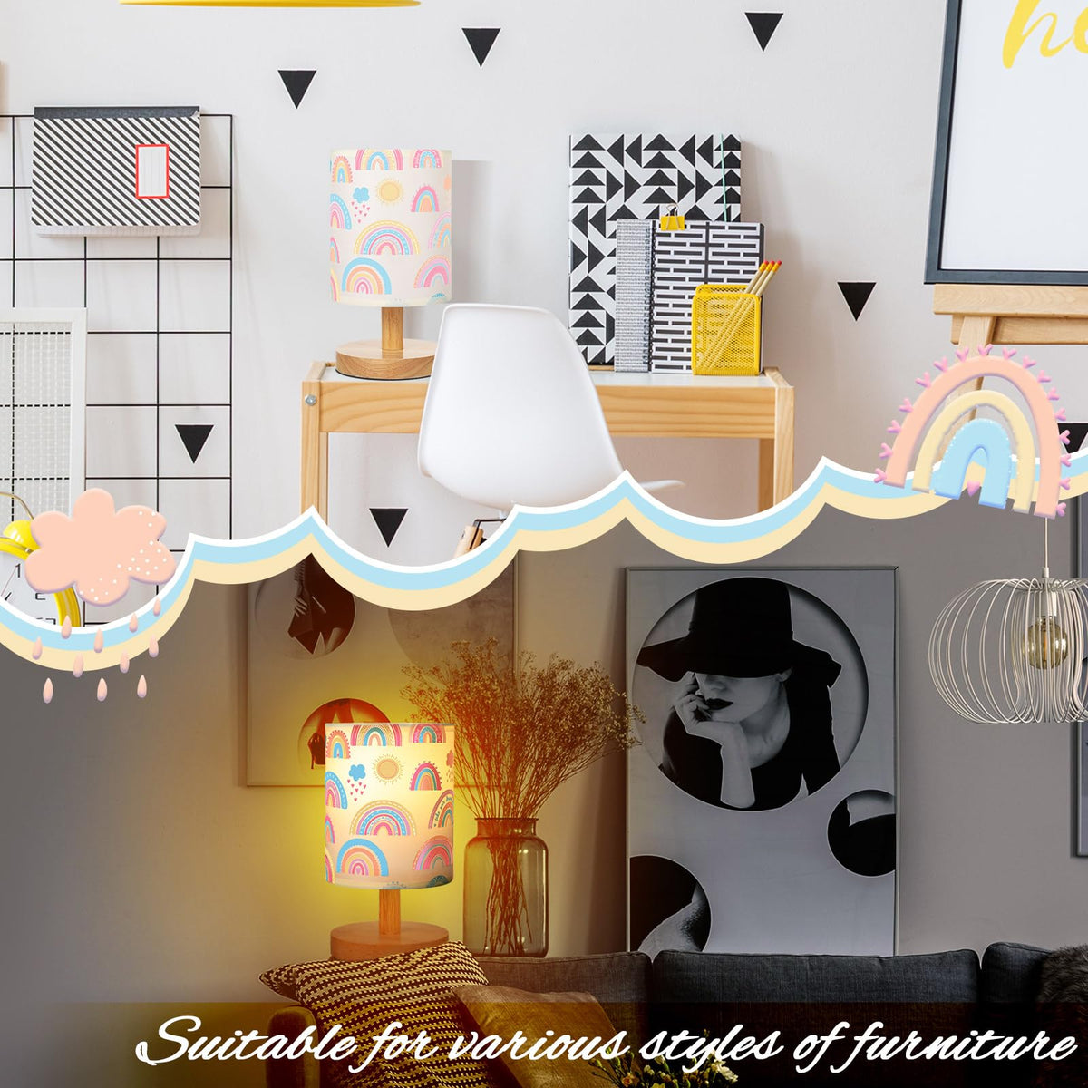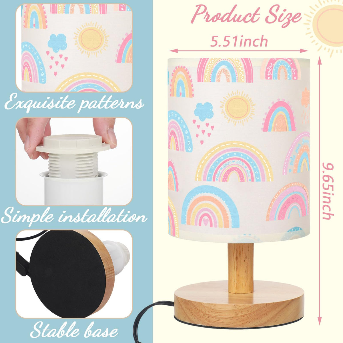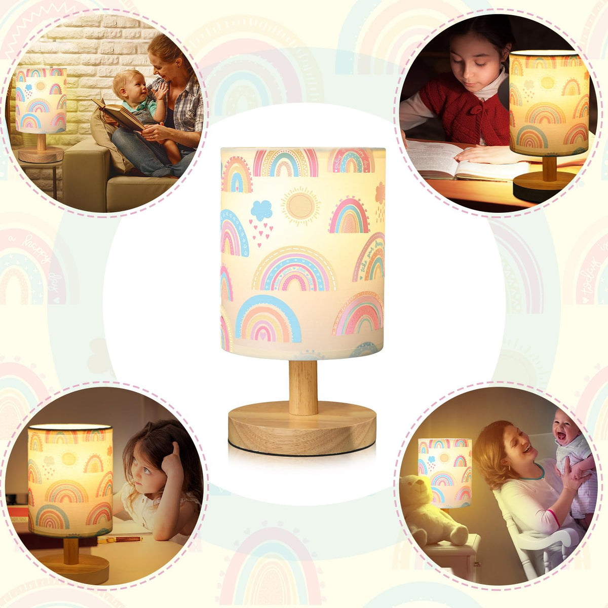 Vihose Rainbow Lamp For Girl Bedside Kids Lamp With Linen Wooden Nightstand Cartoon Nursery Light Lampshade For Girls Boys Livin