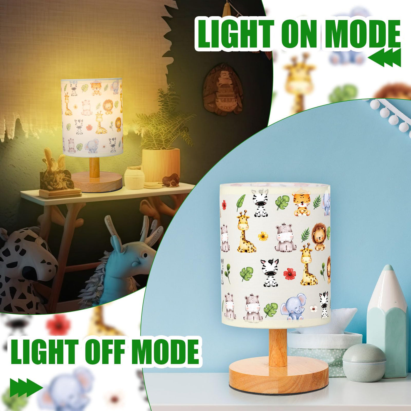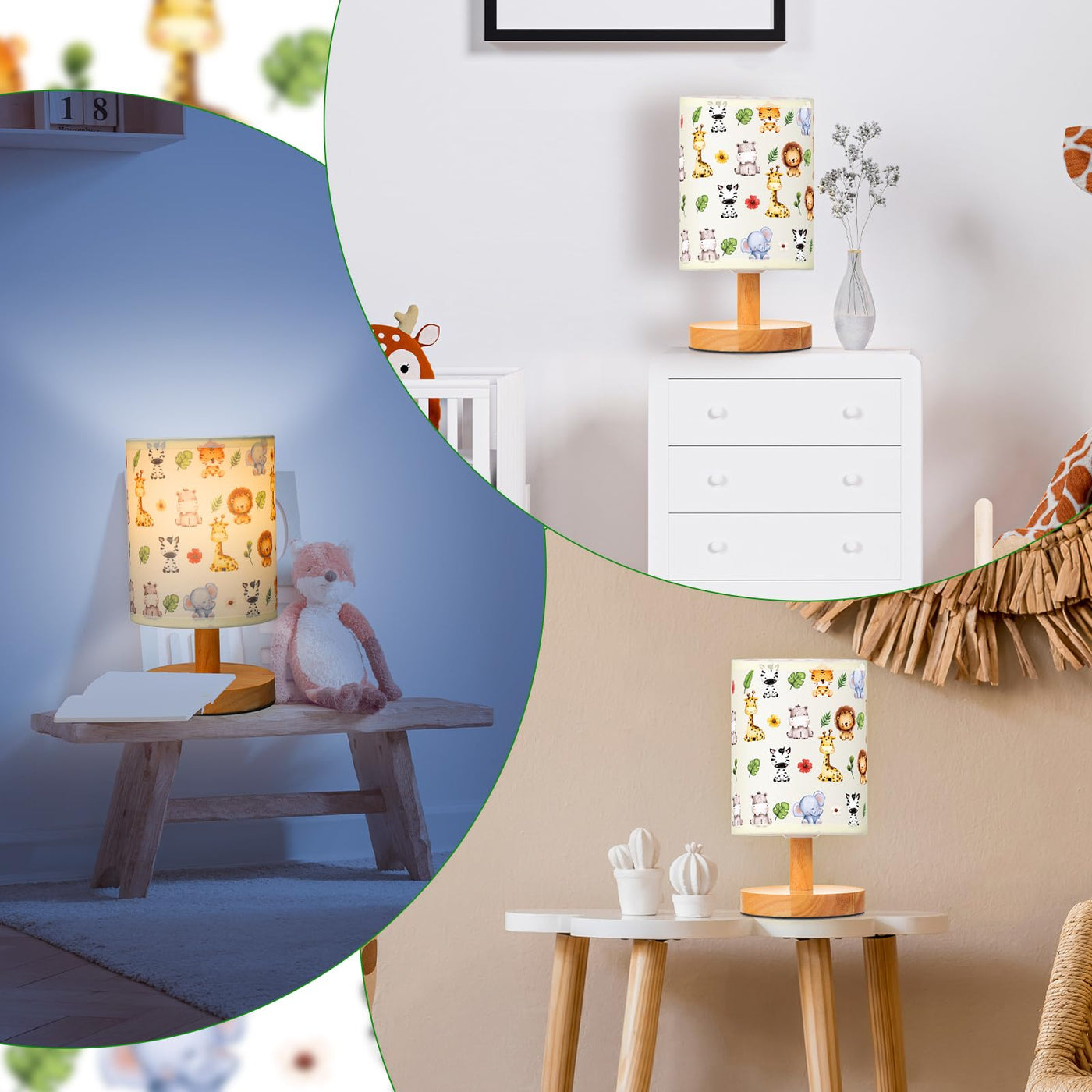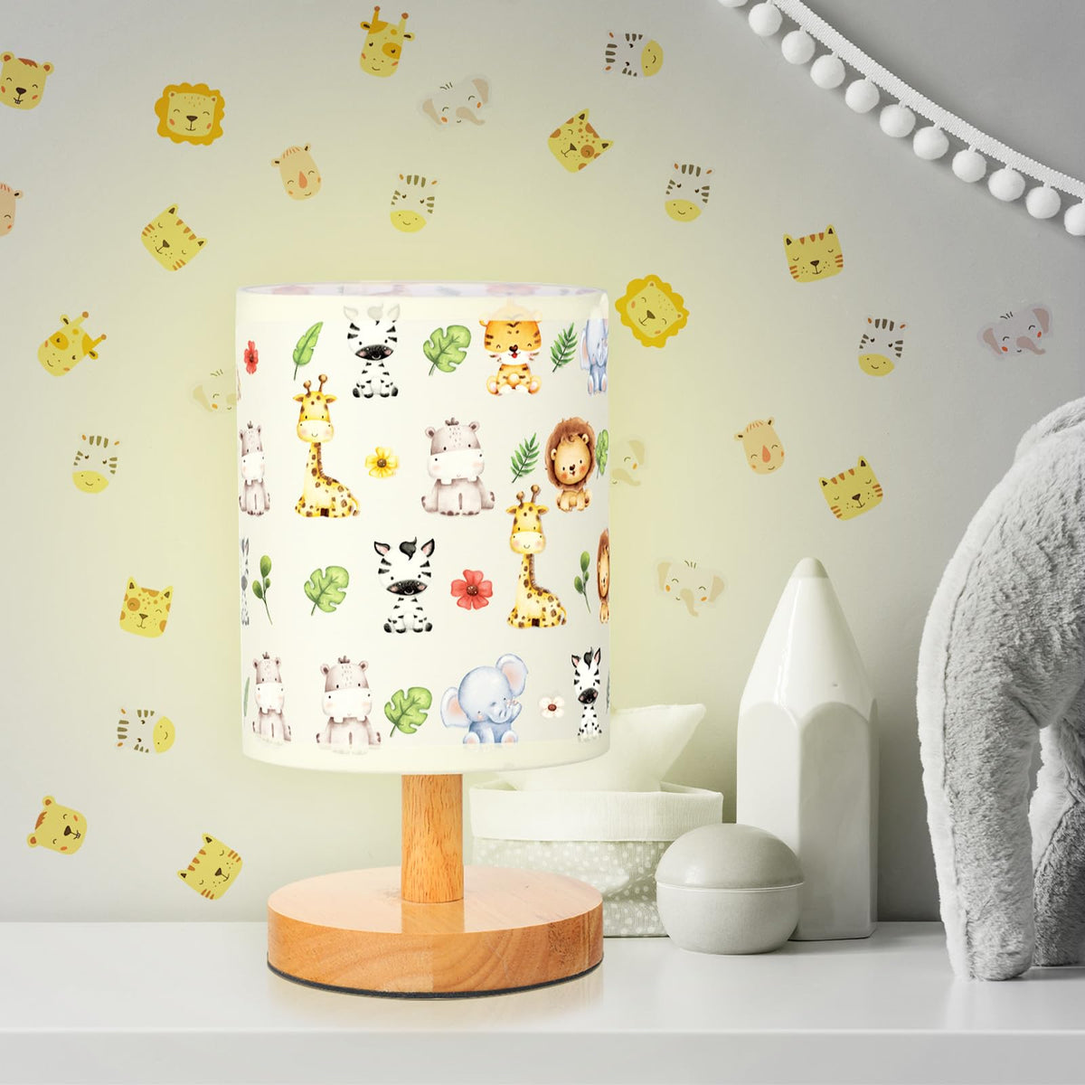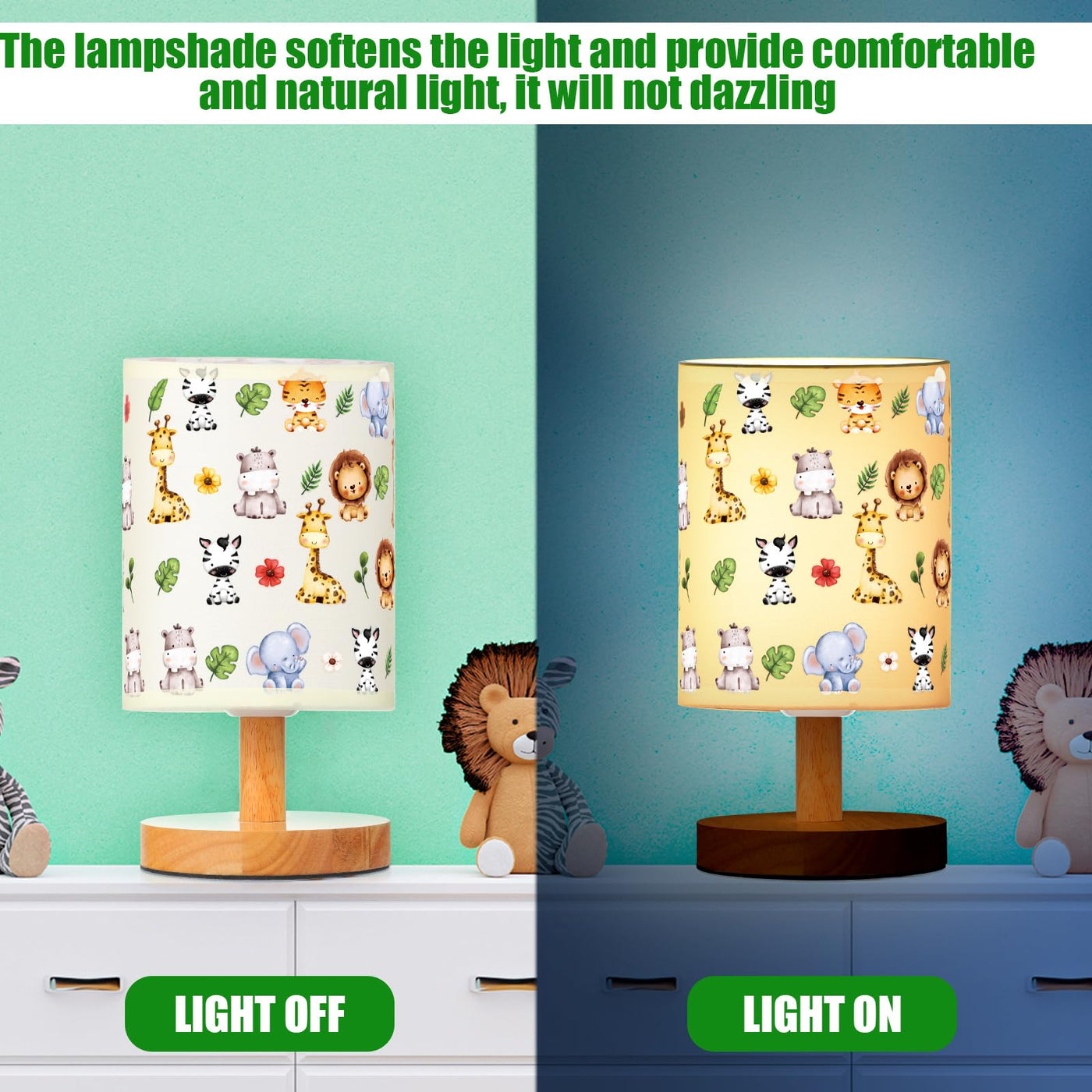 Vihose Safari Animal Table Lamp For Bedroom Kids Bedside Lamp With Linen Wooden Nightstand Lamp Cartoon Nursery Lamp Lampshade F