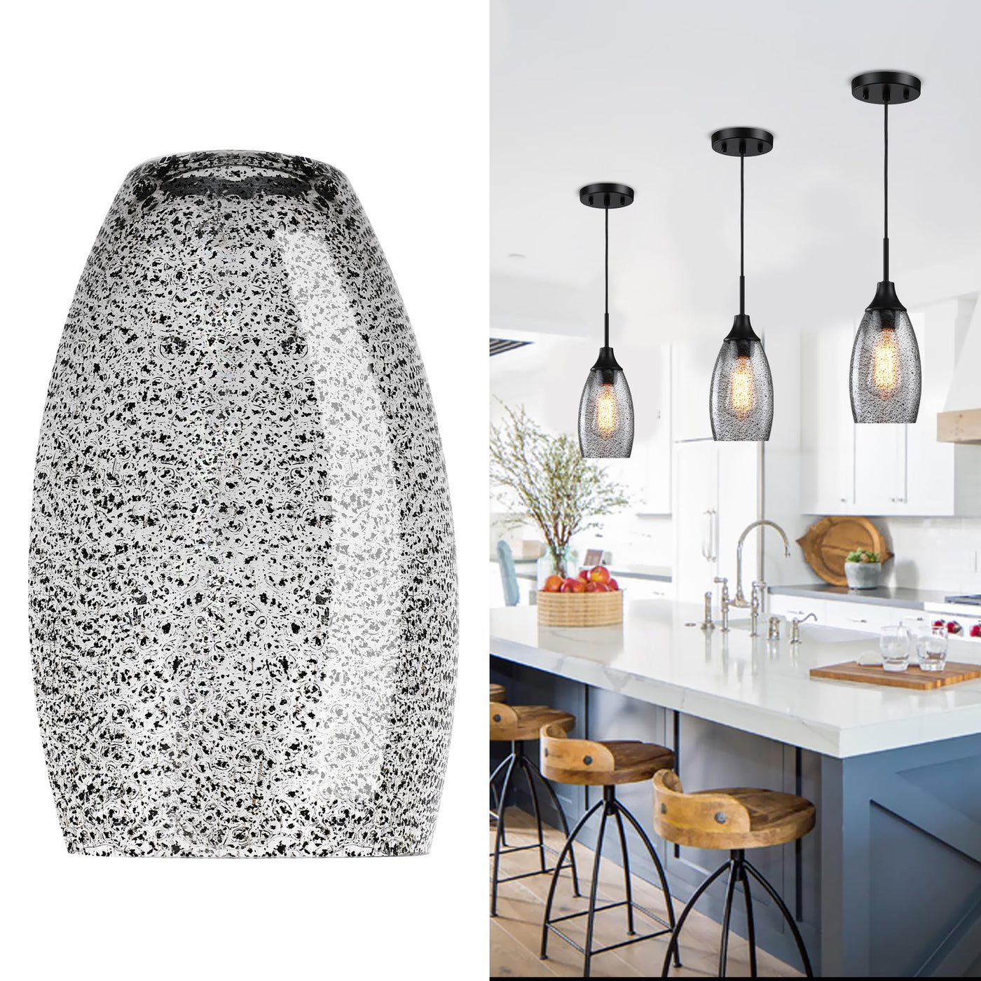 Mini Smoke Glass With Black Seeded Oval Glass Lamp Shade Only Art Glass Shades For Kitchen Island Pendant Lights Glass Lamp Covers Light Fixture Replacement For Mini Pendant Ceiling Lights Chandelier 1-Pack Unique Art Clear Glass With Black Seeded Designed : This Mini Glass Pendant Light Fixture Is Hand Blown Unique Smoke Glass With Black Seeded Designed, Due To Its Hand-Made Nature, Each Piece Of Blown Glass Will Vary In Color And Black Seeded. The Pendant Glass Lamp Shade Are Made Of Traditional Hand-Blown Art Glass With Heat Resistance.Due To Its Hand-Made Nature,Each Piece Of Blown Glass Will Vary In Color And Black Seeded. The Bubble Is The Nature Of Handblown Glass Shade.
