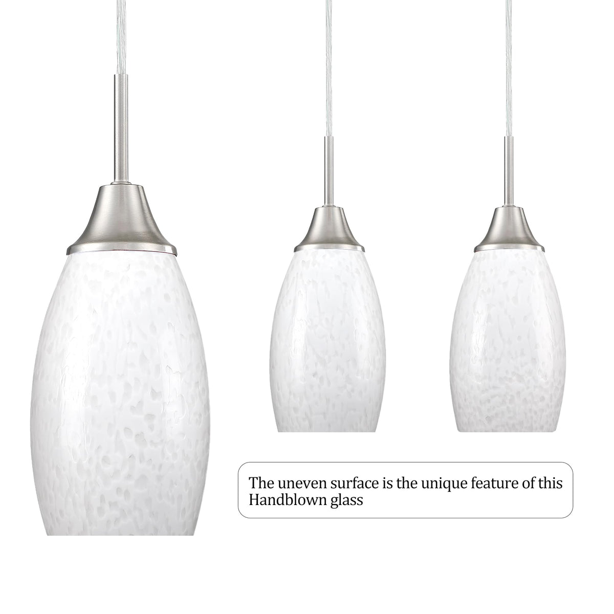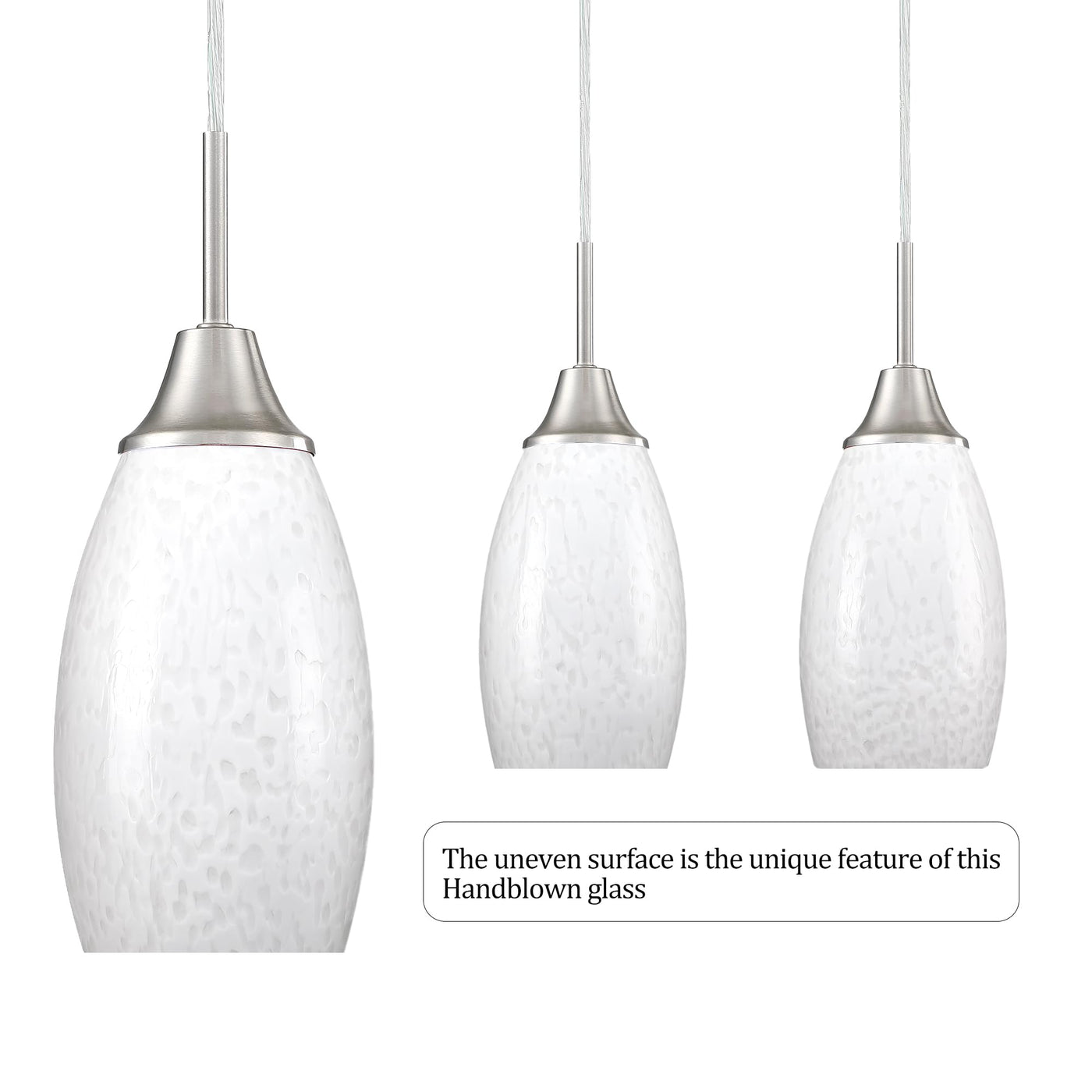 Viinew Mini Glass Pendant Light 1-Pack With Handblown Milky White Art Glass Shade Adjustable Cord Brushed Nickel Finish Hanging Pendant Light For Kitchen Island,Dining Room,Living,Foyer, Hallway Mini Oval Pendant Lights Hanging Kitchen Island Lights Pendant Light Globes Only Pendant Light Shades Replacement