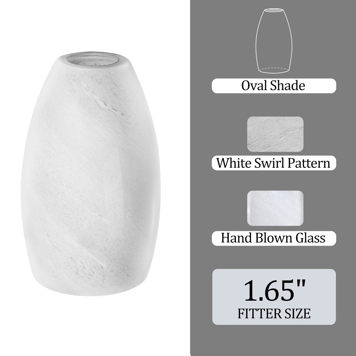 Unique Art Glass Patterns:This Mini Glass Pendant Lamp Shade With Hand-Blown Art Glass Unique Pattern,Due To Its Hand-Made Nature,Each Piece Of Blown Glass Will Vary In Color And Pattern. Adding A Touch Of Elegance To Home With Our Art Glass Lamp Shade.Art Glass Shades Modern Glass Chandeliers Shade Mini Glass Pendant Light Shade Oval Glass Lamp Shade White Swirl Marbled Glass Shade