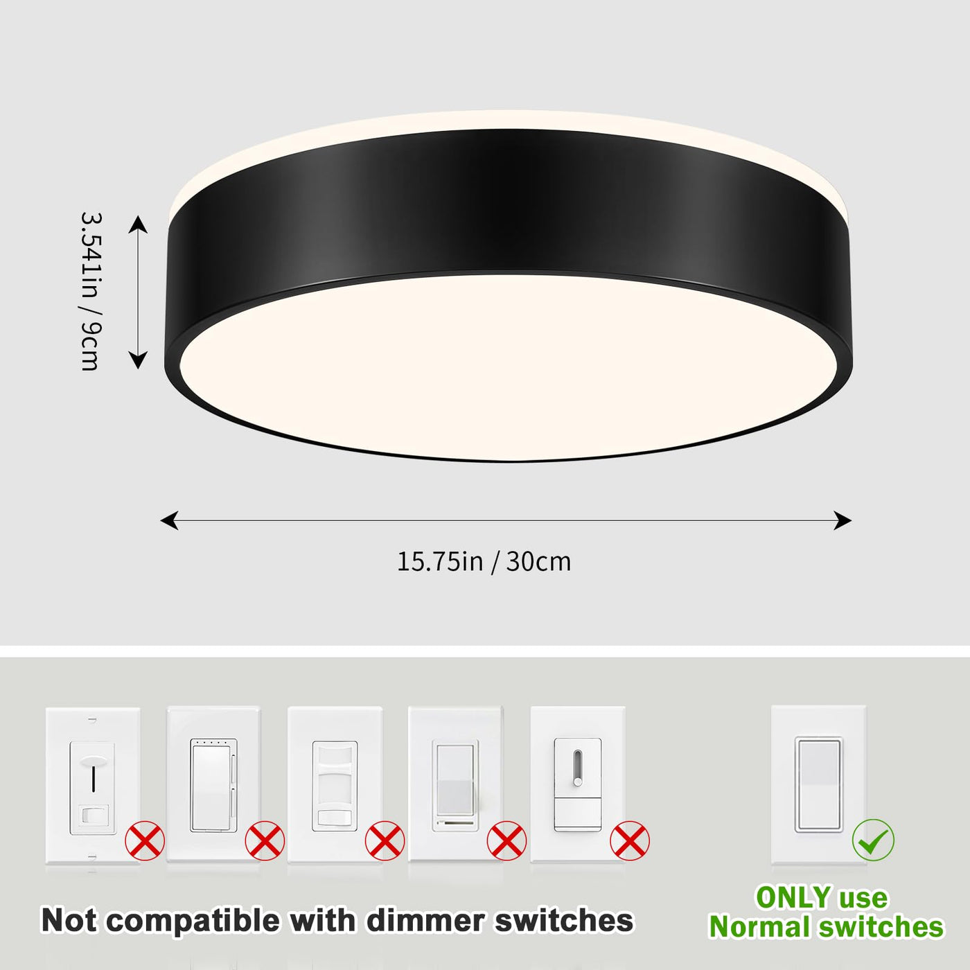 Vikaey Black LED Ceiling Light, Modern Flush Mount Ceiling Light Fixture, Minimalist Round Metal Lighting Fixture Ceiling Lamp for Living Room, Entryway, Bedroom, Kitchen, 15.74 Inch