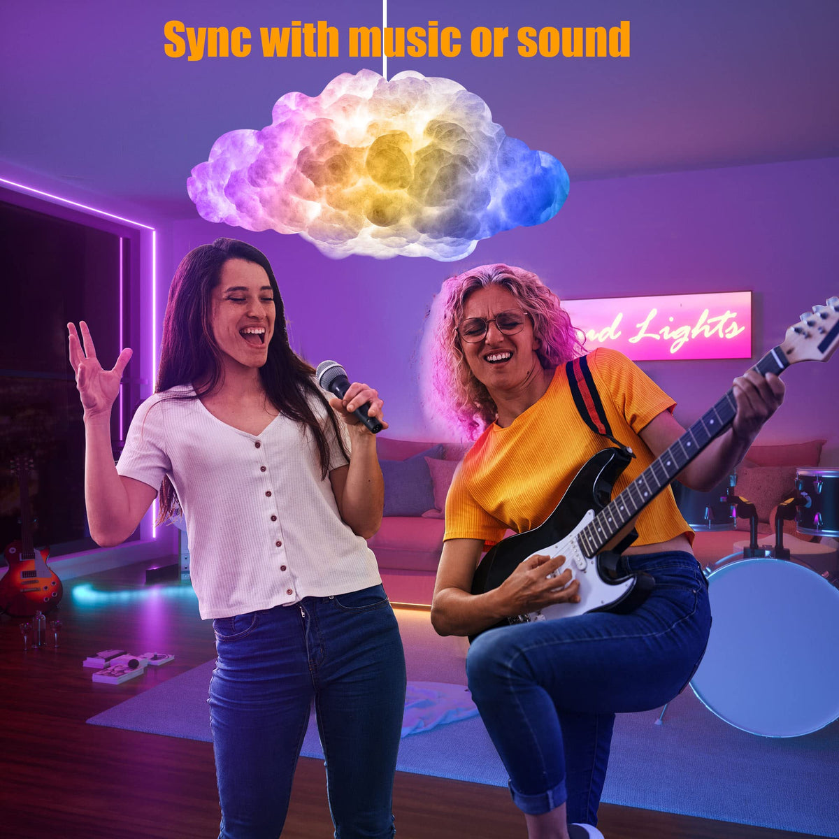 Q: Can the LED Cloud Light sync with music?A: Yes, the LED Cloud Light features a built-in microphone that allows it to recognize sound. It can change colors based on the frequency and rhythm of the music, making it perfect for creating a festive atmosphere during parties or gatherings.
