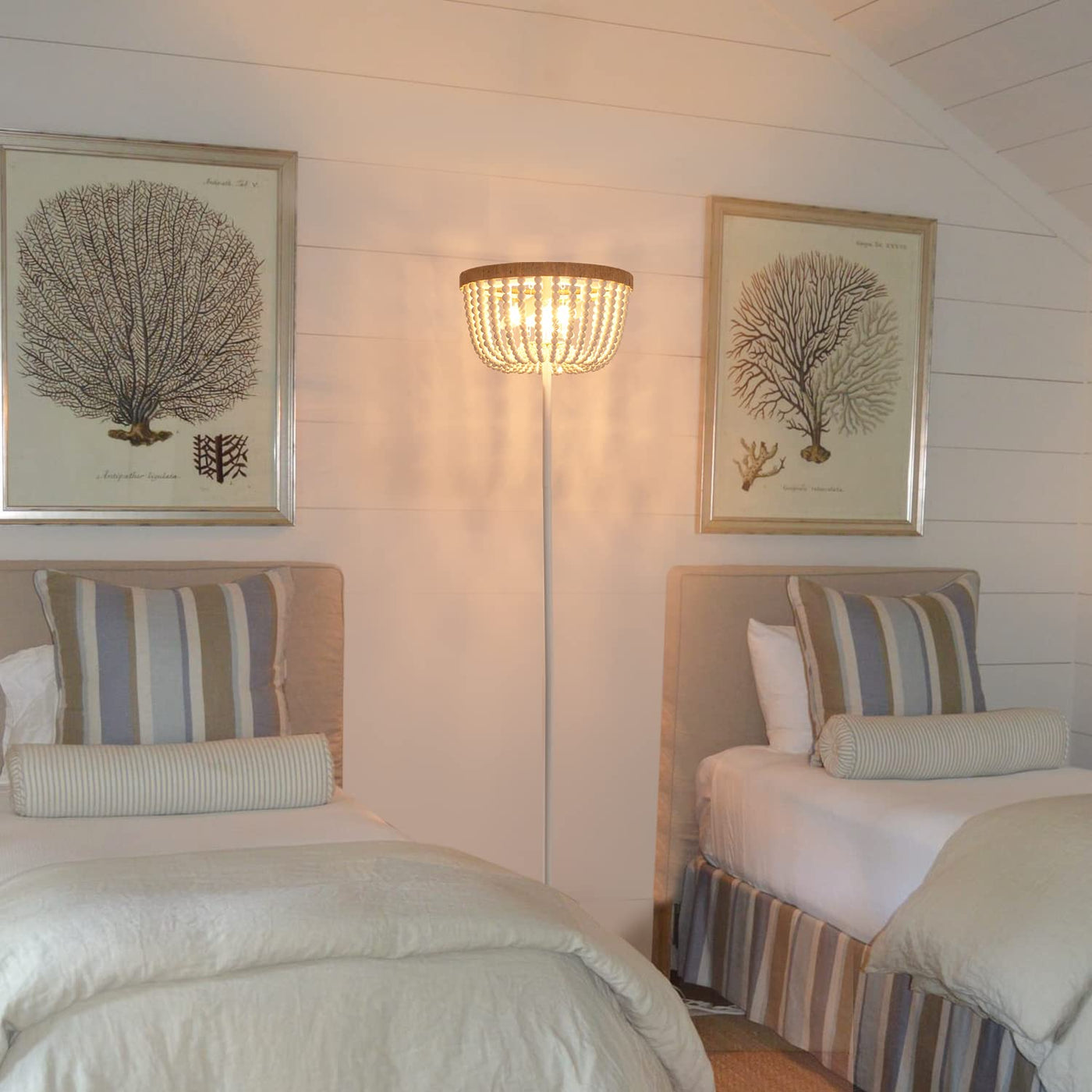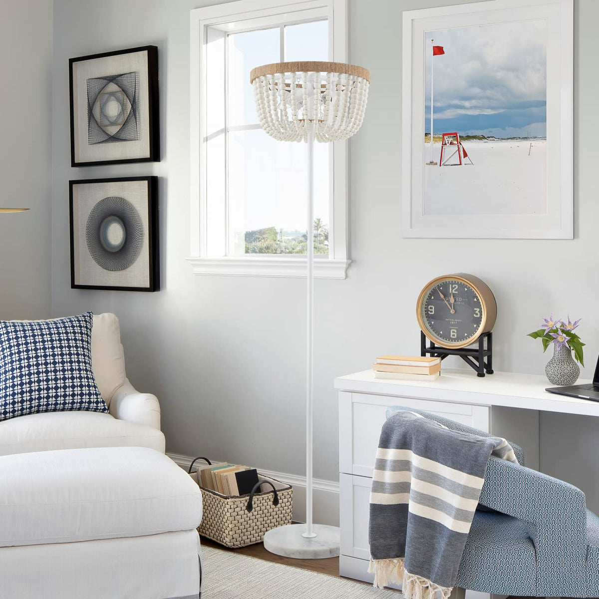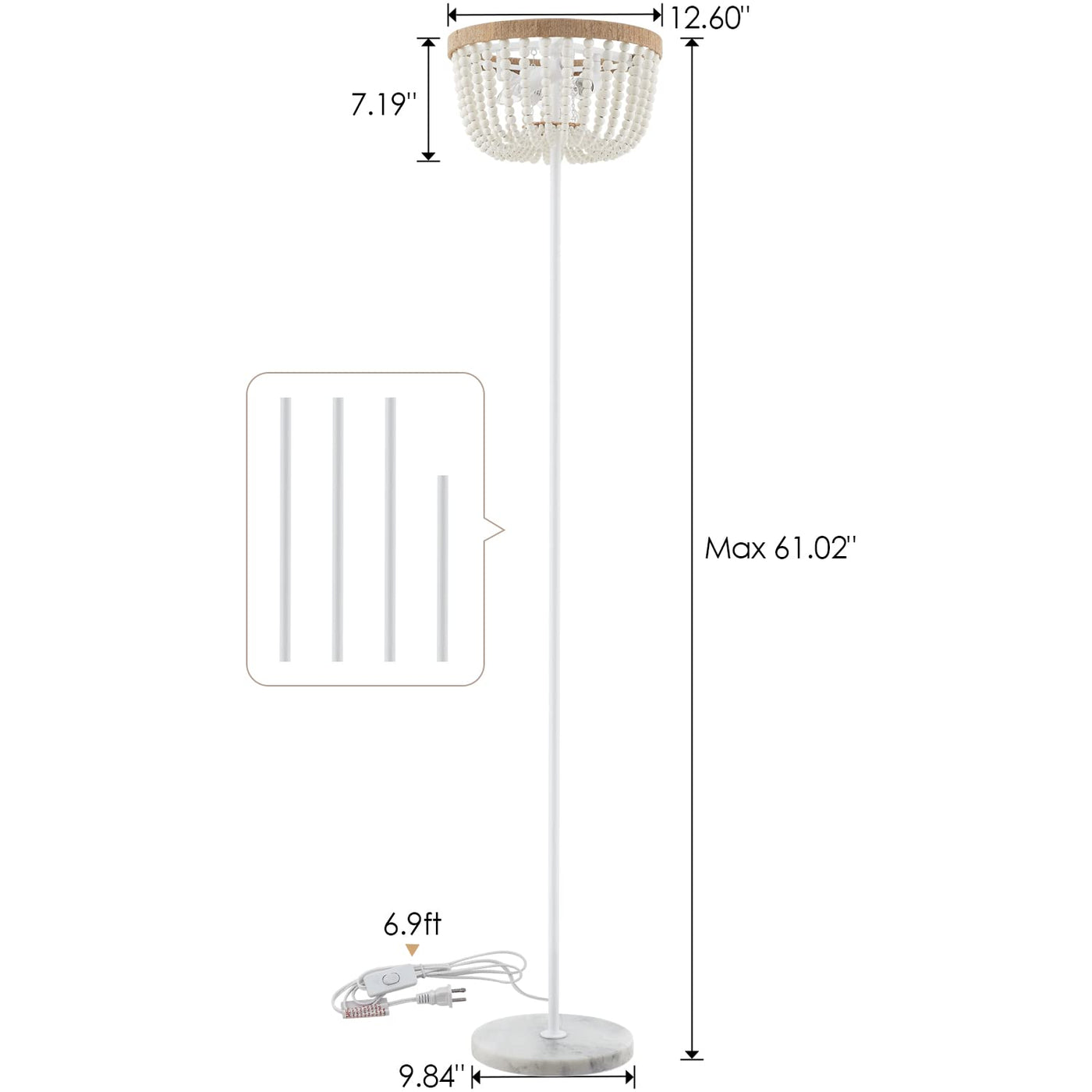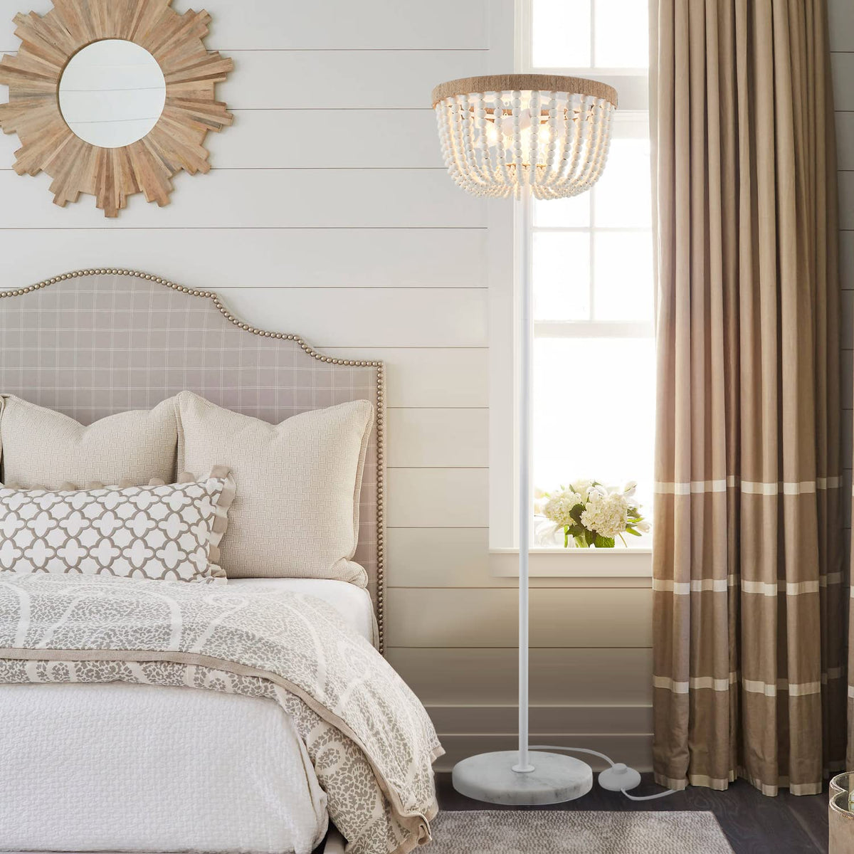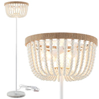 Viluxy Boho Floor Lamp With White Wood Beaded Shade For Bedroom, Living Room, Girl Room 3-Light