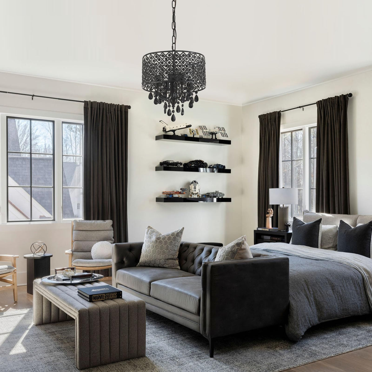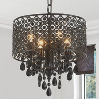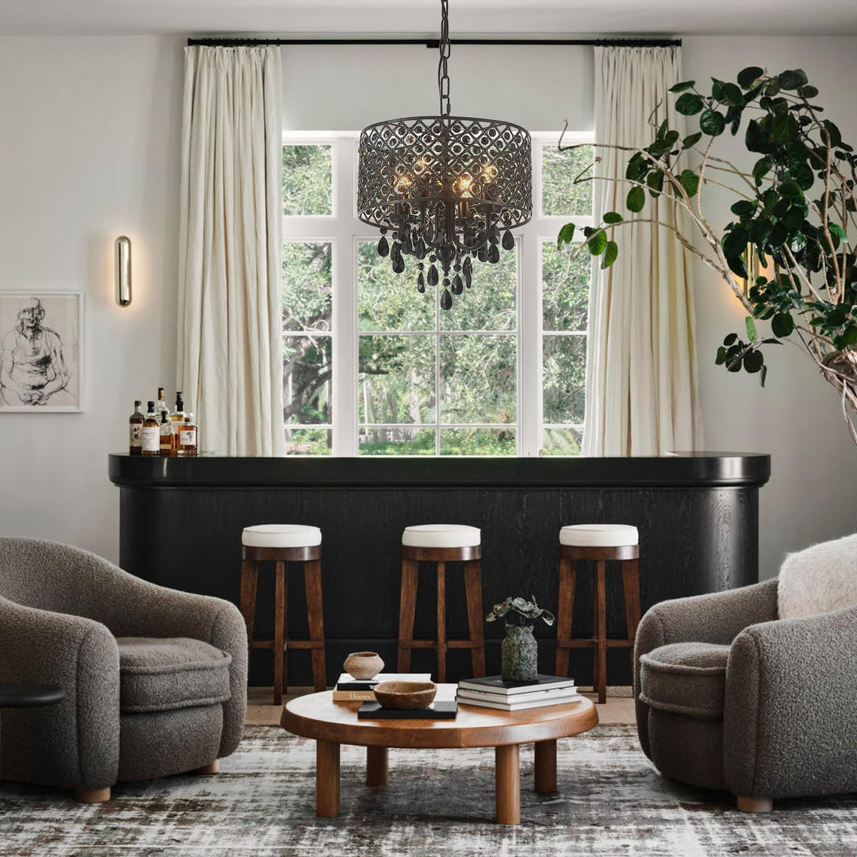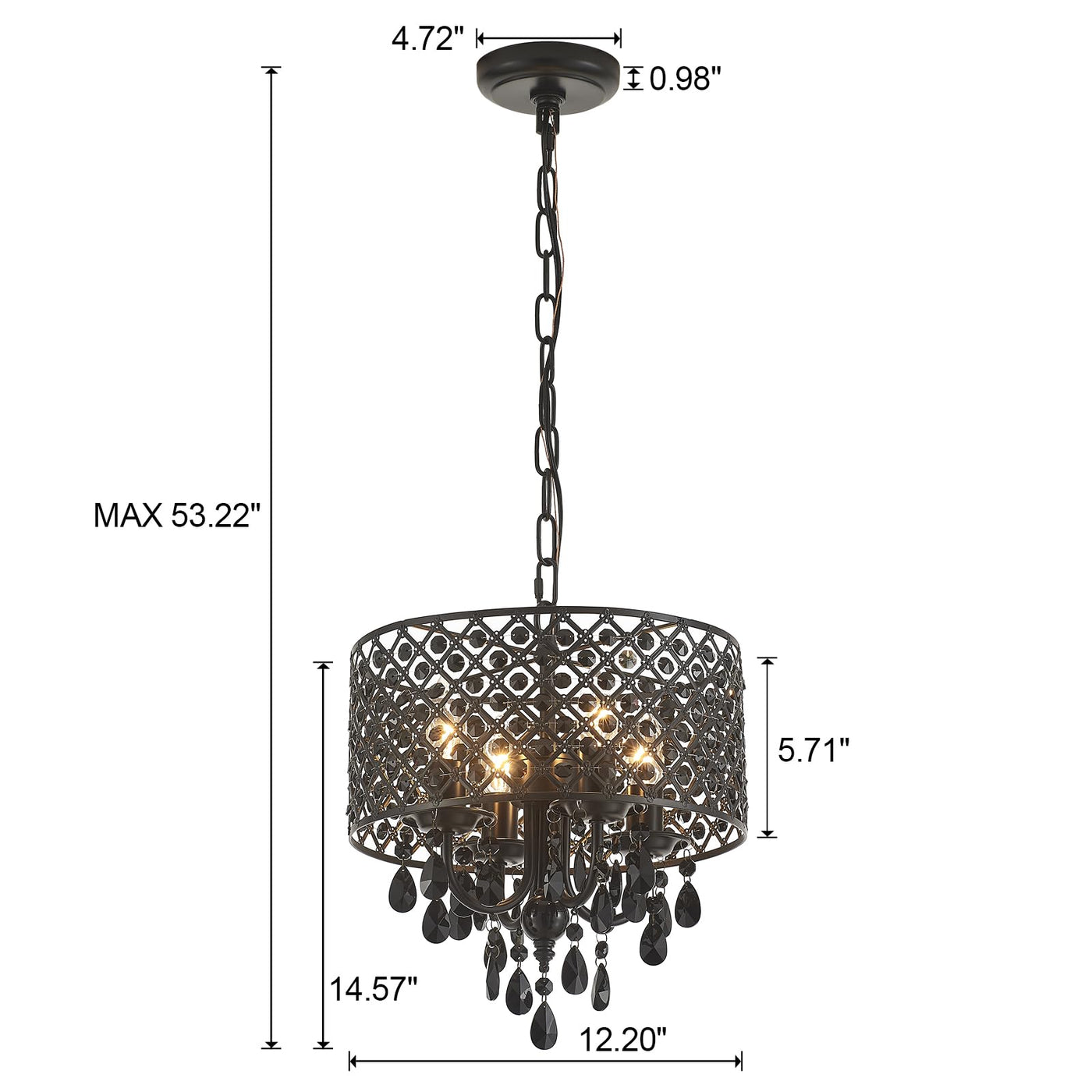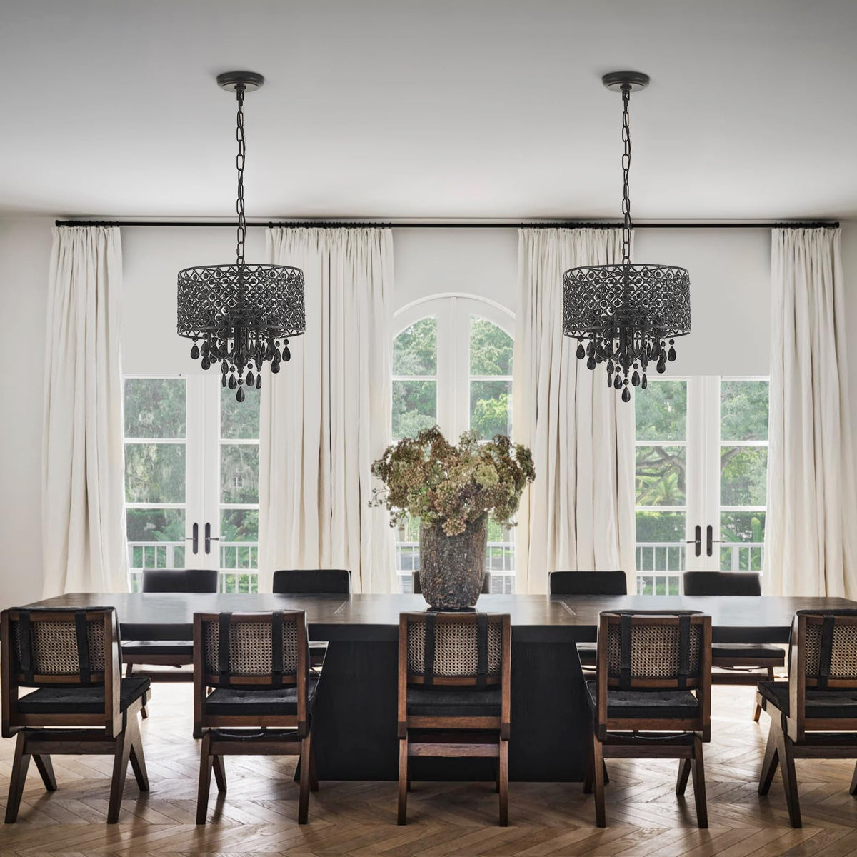Viluxy Crystal Chandelier For Dining Room Black Smoke Ceiling Pendant Lighting Modern Crystal Hanging Light Fixture Small Drum C
