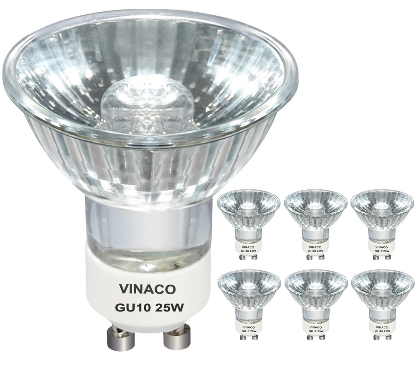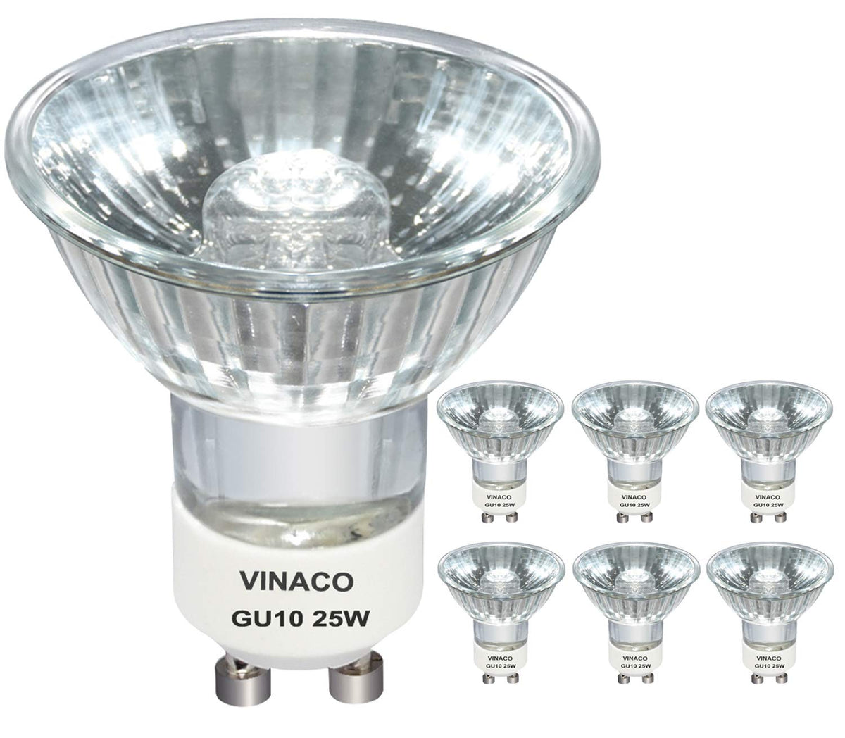 Q: What is the energy efficiency of these halogen bulbs?A: The Vinaco GU10 25W halogen bulbs provide 220 lumens, making them energy-efficient for melting scented candle wax without overheating, thus creating a pleasant and smoke-free atmosphere.